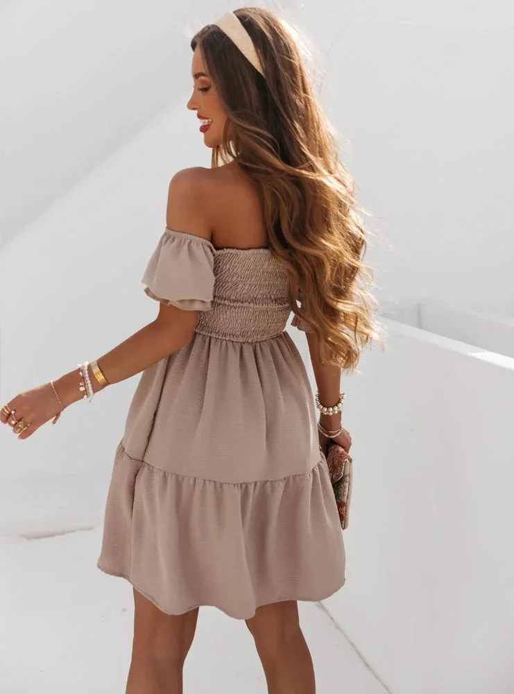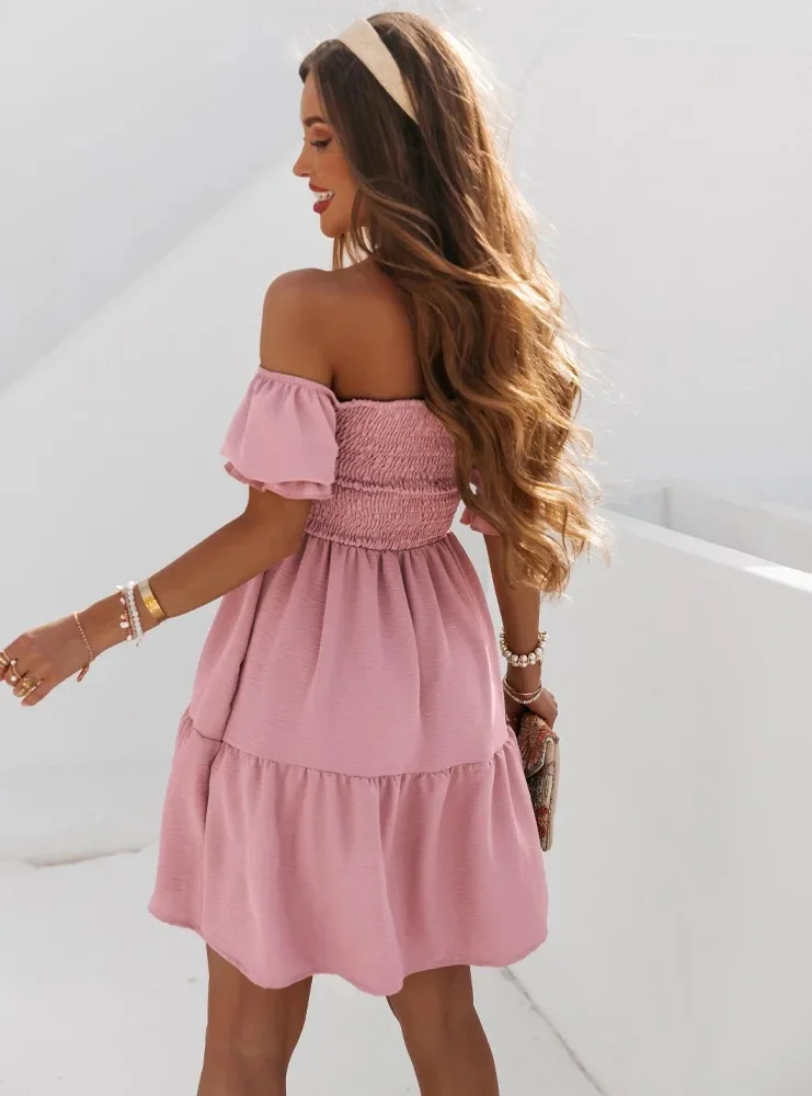 Redhk Wholesale Women Smocked Dresses Boat Neck Summer Casual Dresses Middle Length Dresses