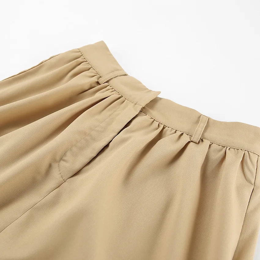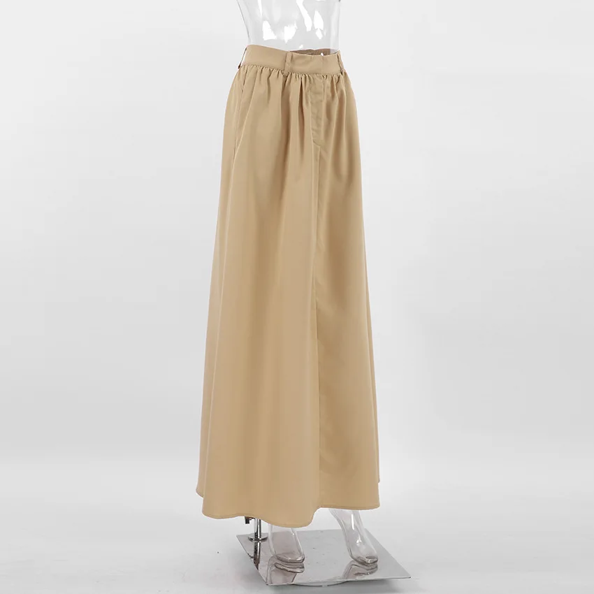 RedPeony Office Ladies High Waist Long Black Skirts Women Ruched Pockets Ankle-Length Skirts Khaki Loose Casual A-Line Skirts