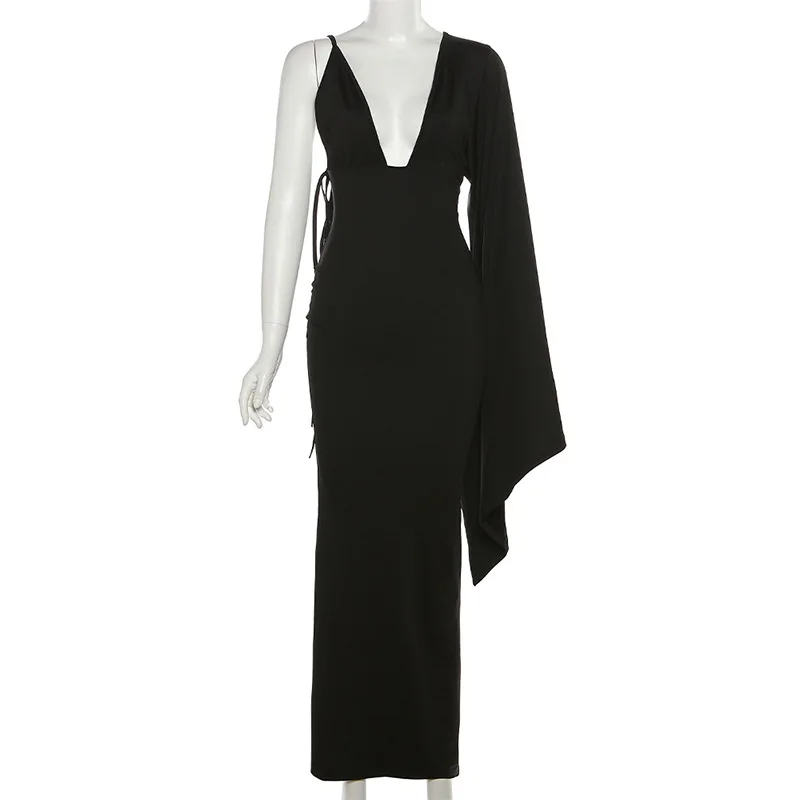 RedPeony Party Club Women Elegant One Shoulder Gown Slip Dresses Ruched Fashion Draped Deep V Sexy Backless Maxi Dresses