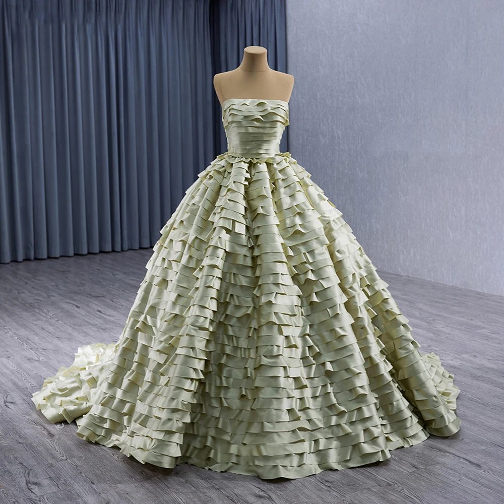 Removable Sleeves Ruffle Skirt Elegant Tulle Bridal Dress Long Tailing Wedding Evening Gown Rsm241023