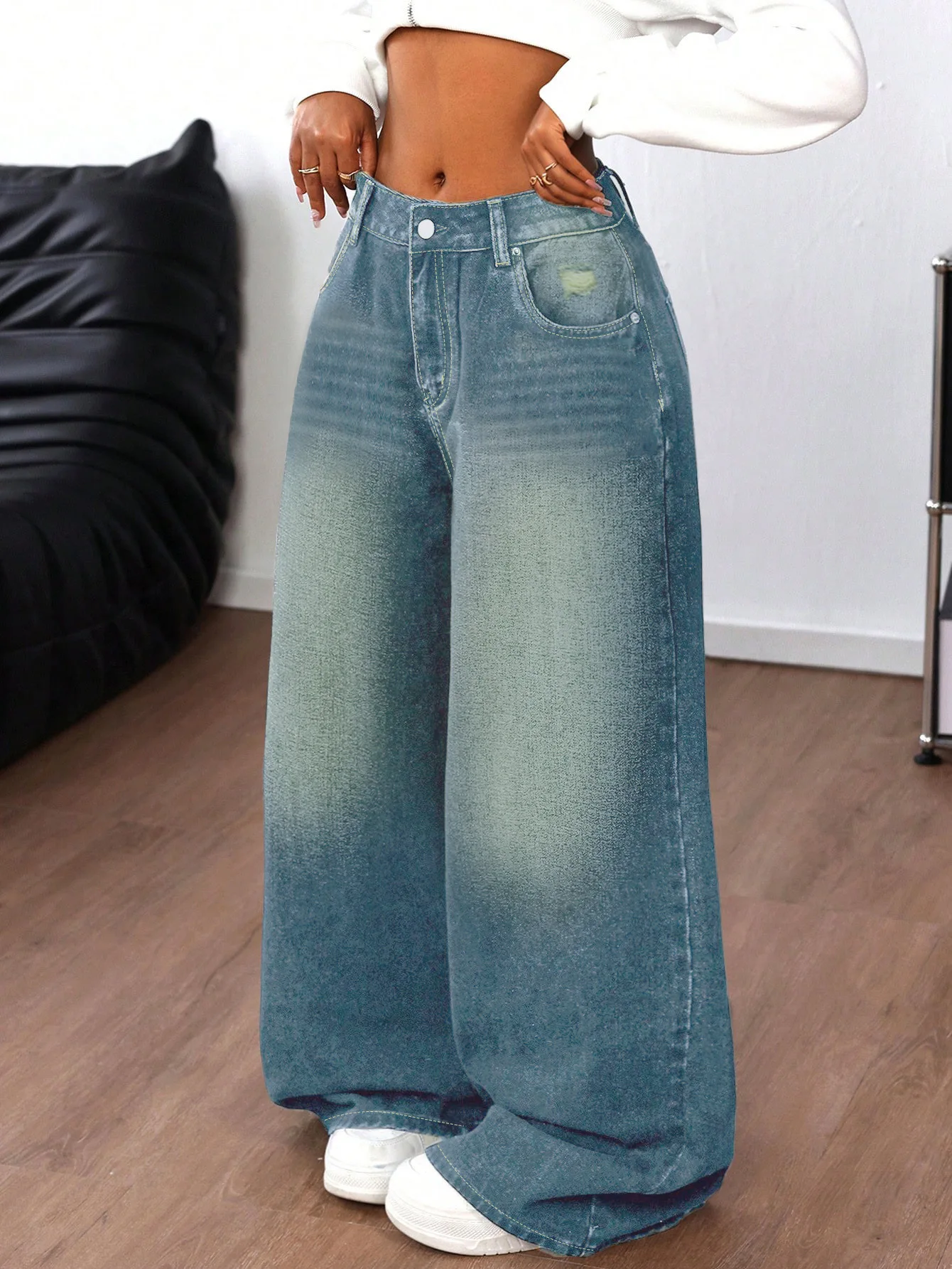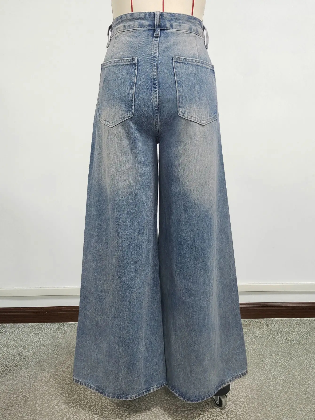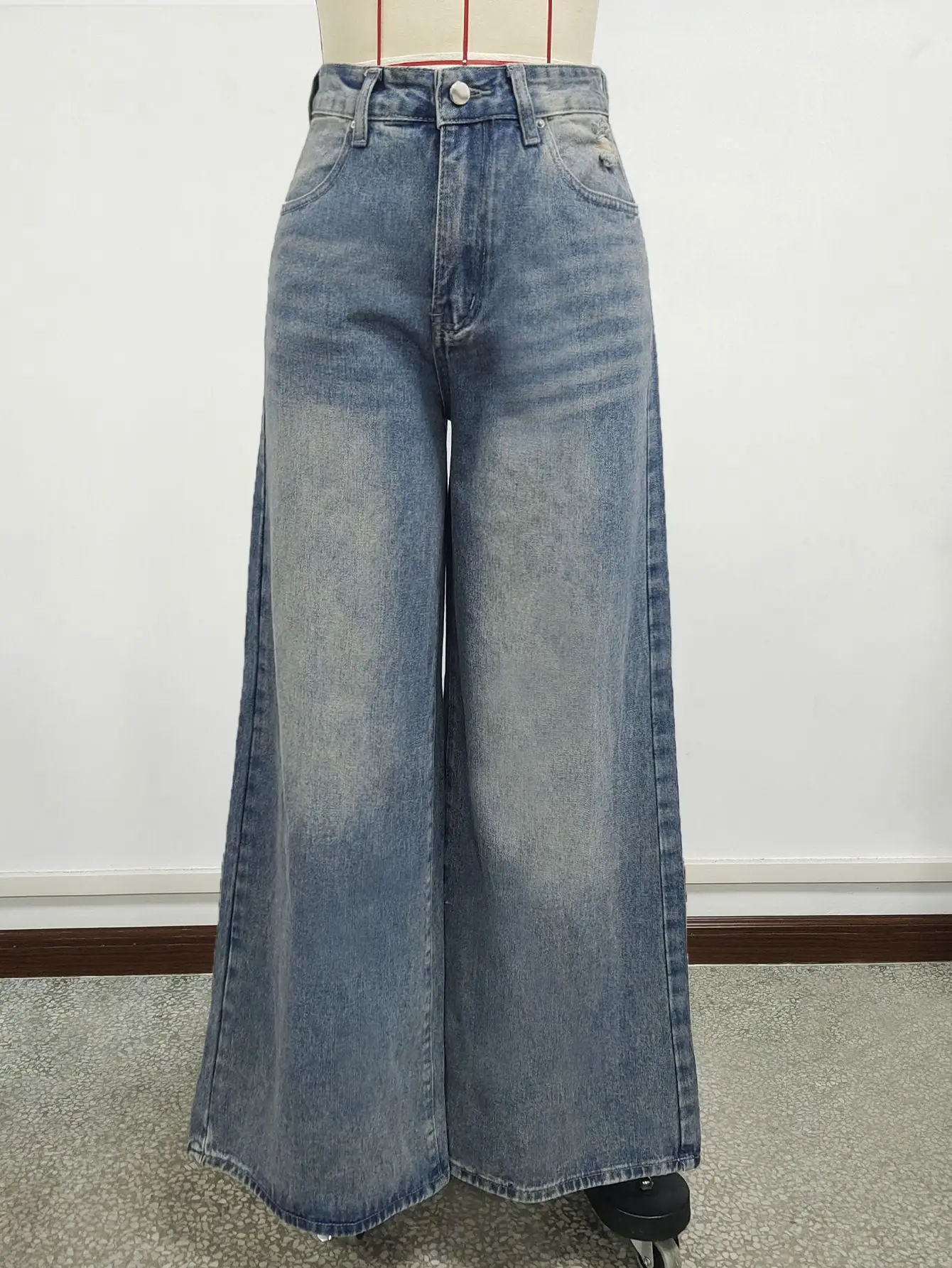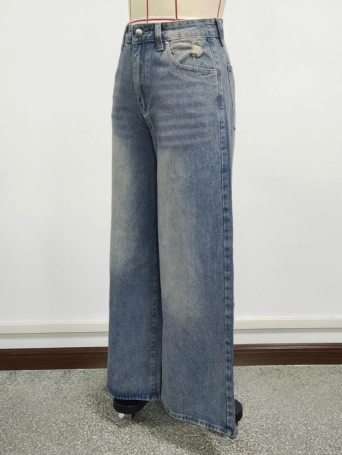 Retro Baggy Jeans Women Clothing Street Fashion Washed Distressed High Waisted Jeans Woman Casual Wide Leg Jeans Pants