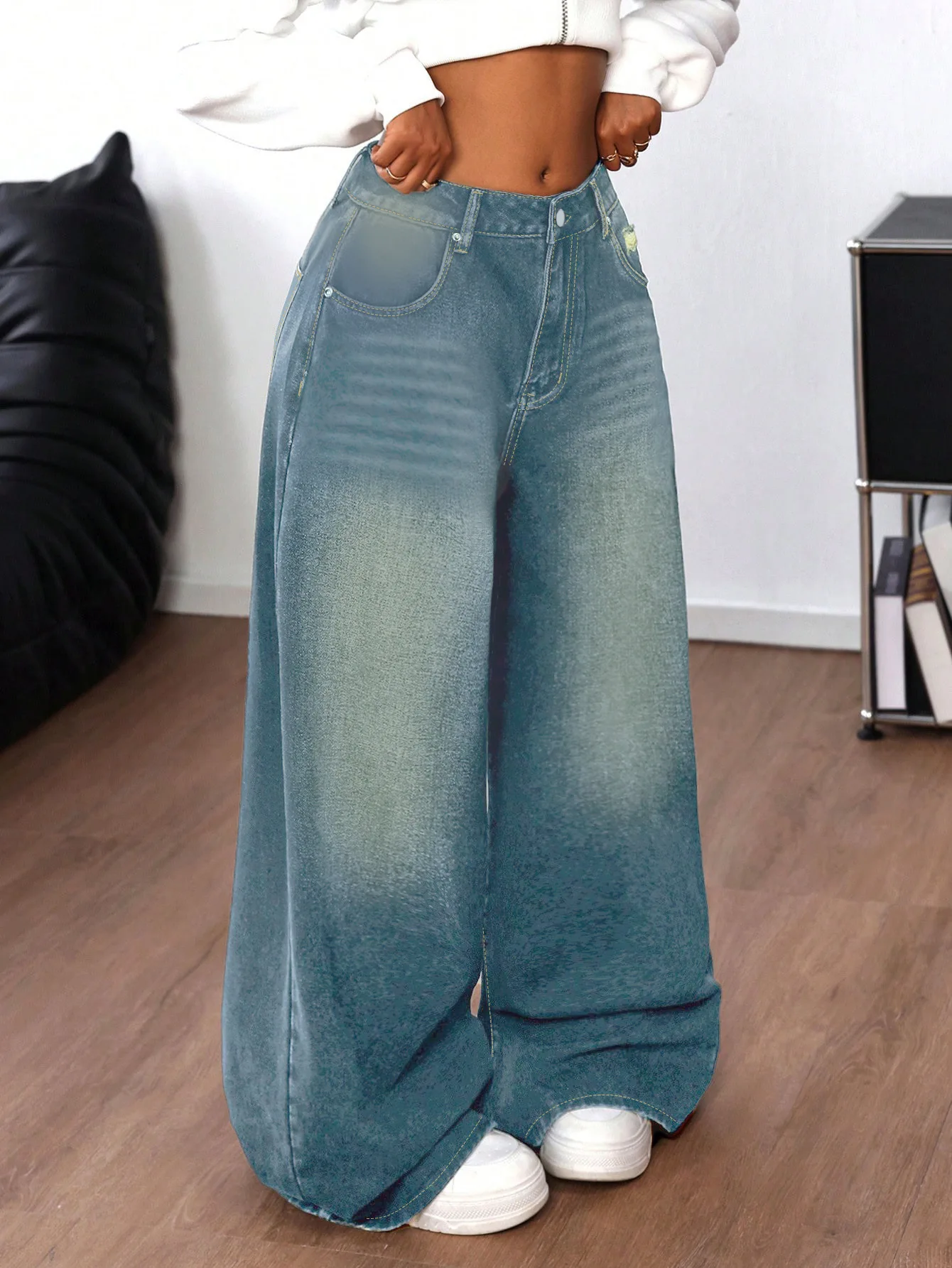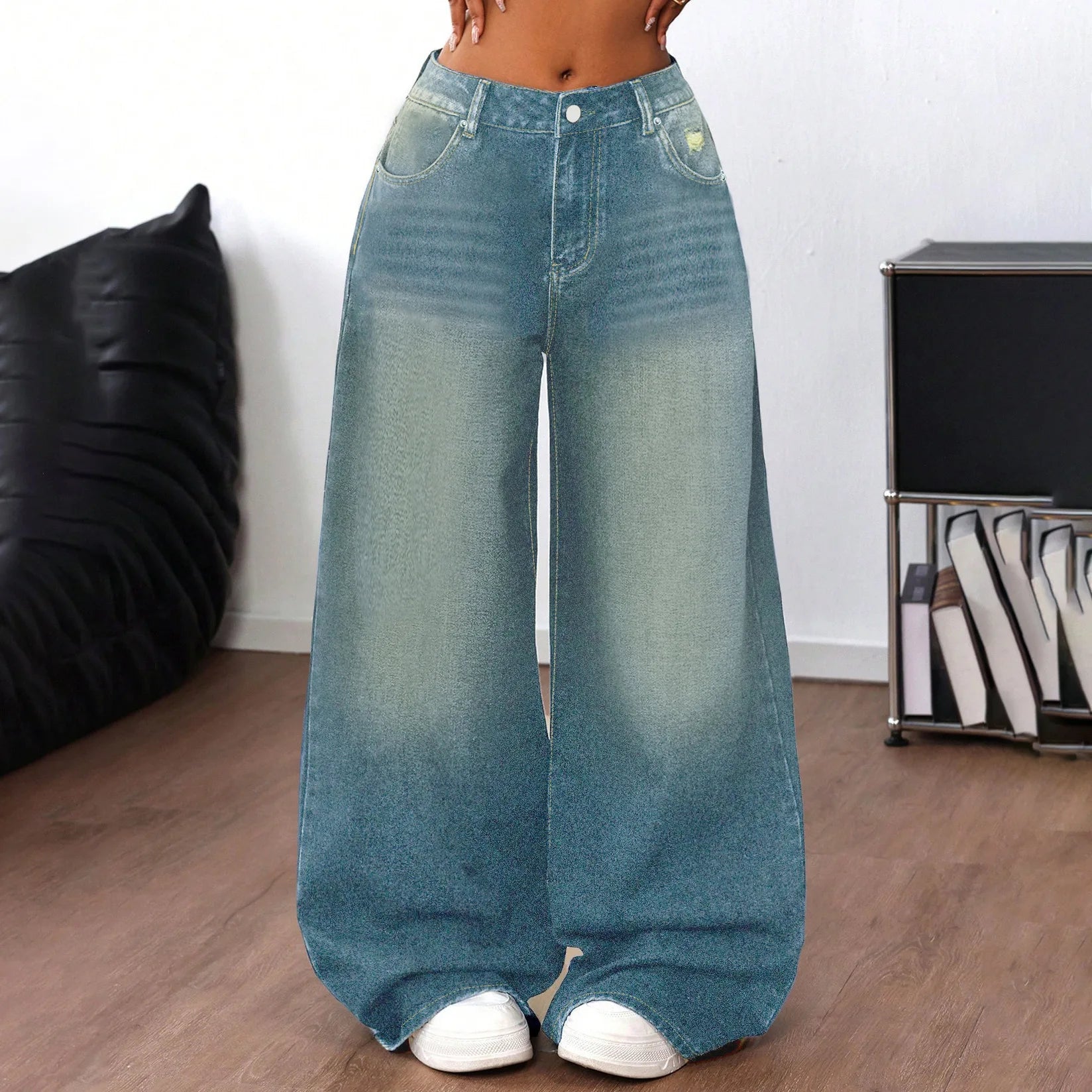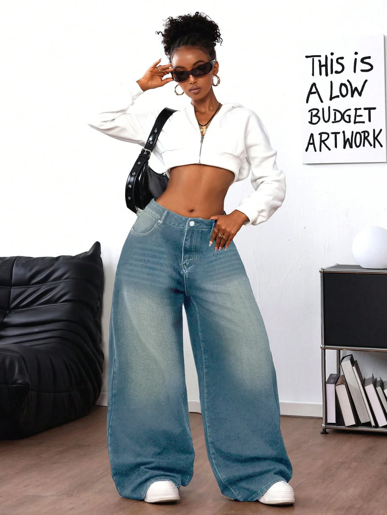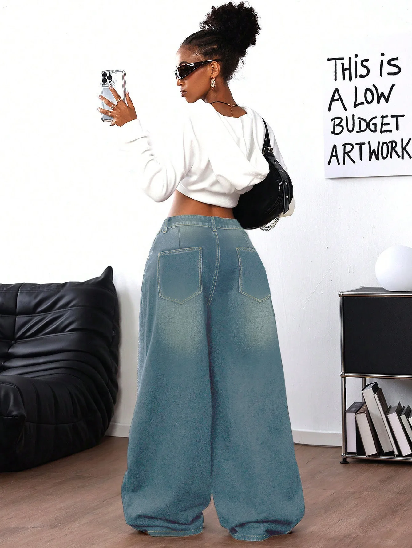 Retro Baggy Jeans Women Clothing Street Fashion Washed Distressed High Waisted Jeans Woman Casual Wide Leg Jeans Pants