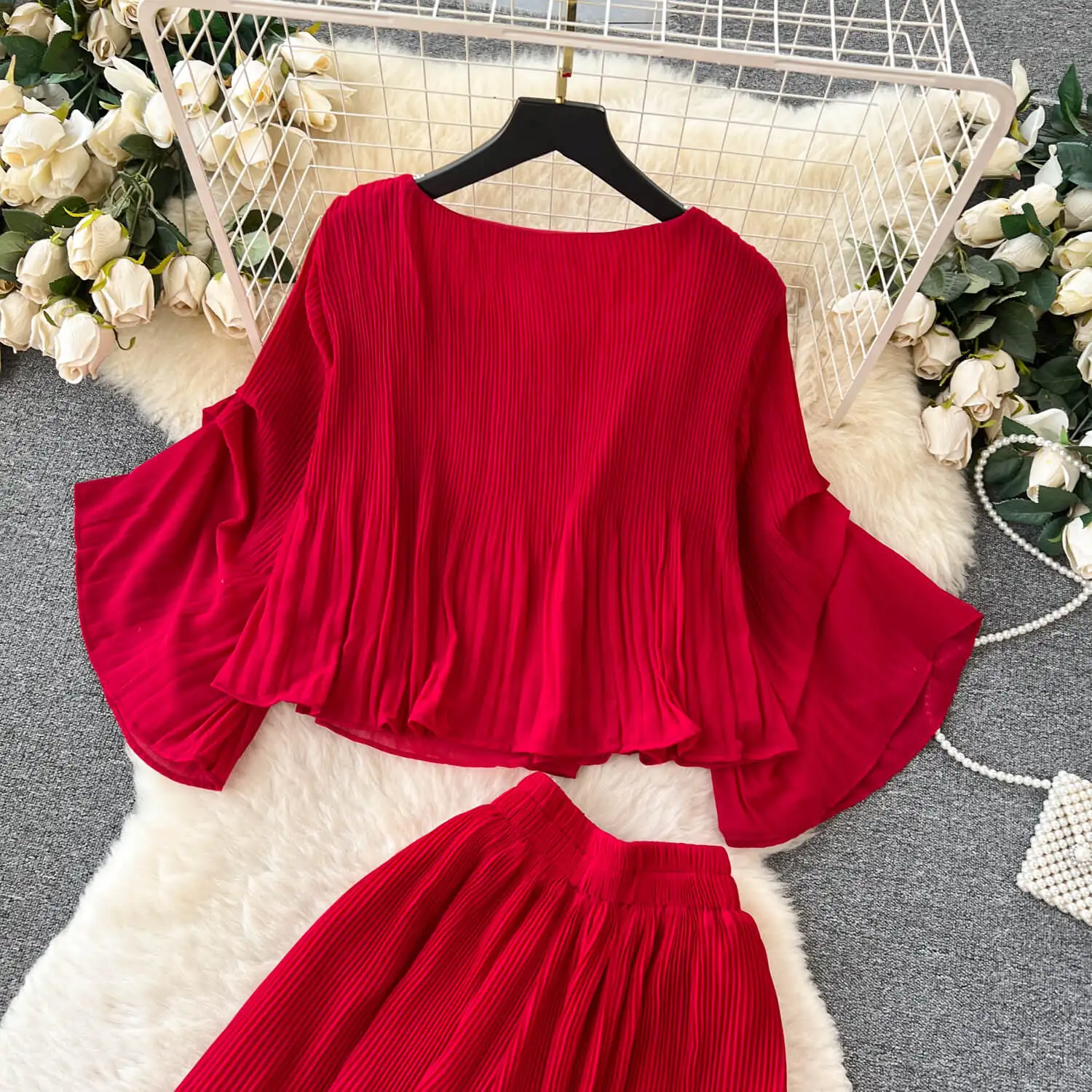 Retro Fashion Set Women's Summer Loose Short T-Shirt + High Waist Long Pants