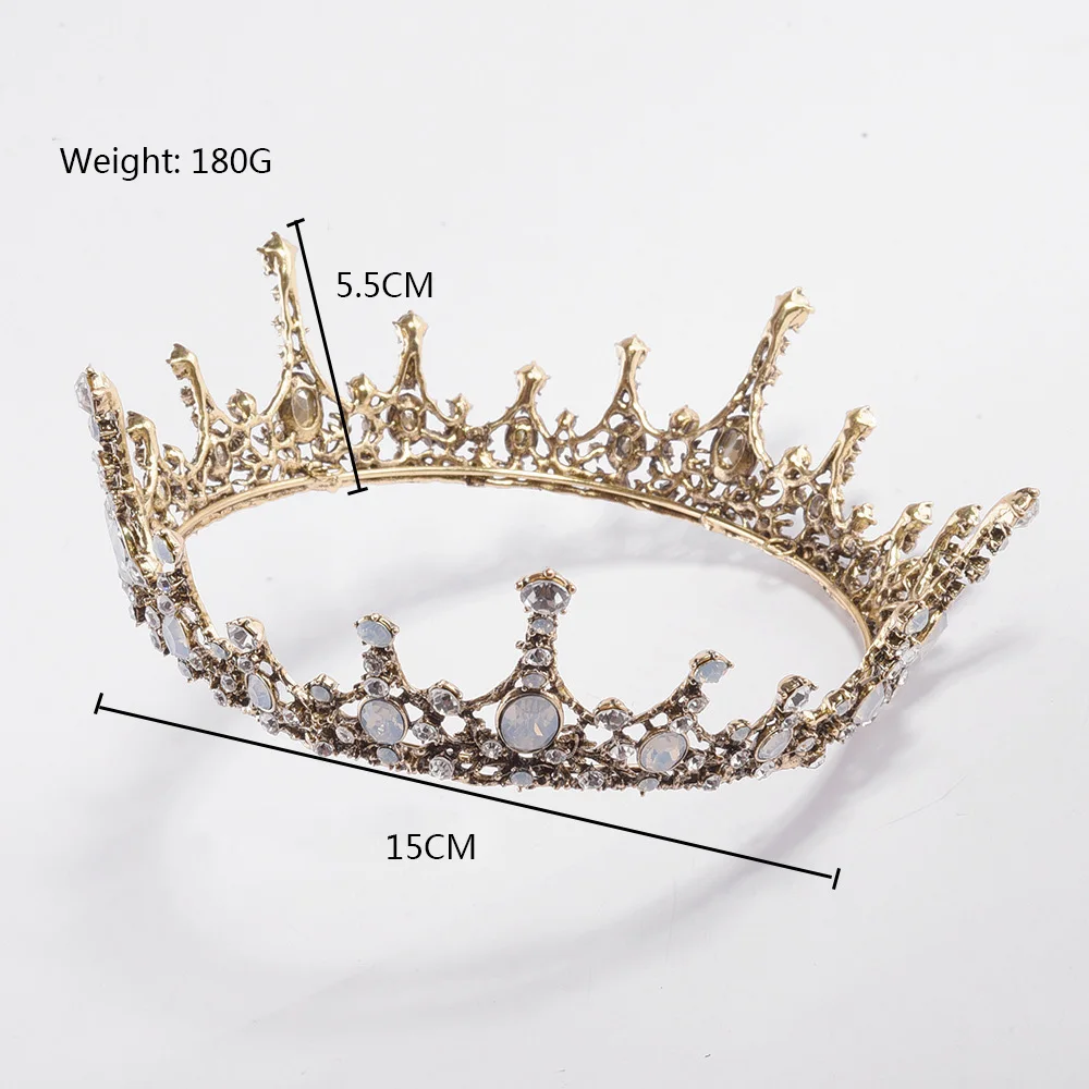Retro Palace Queen Baroque Bride Hair Ornament Round Full Circle Crown Tiaras Studio Headdress Crown