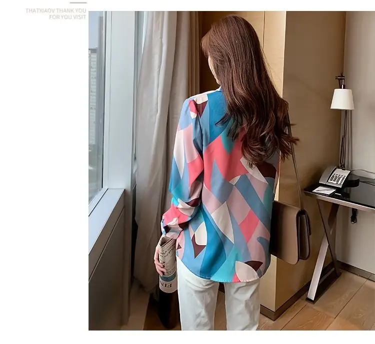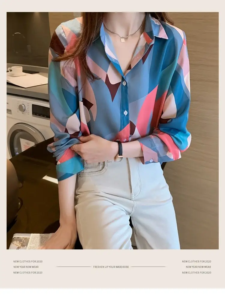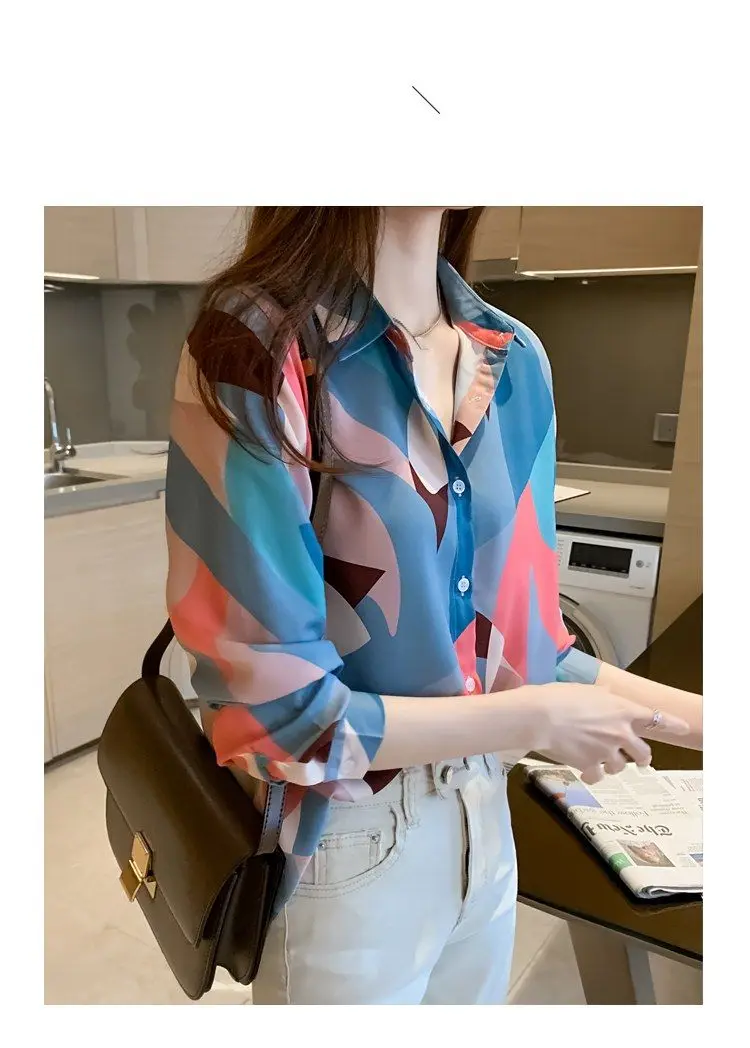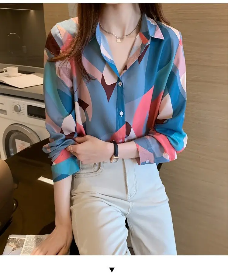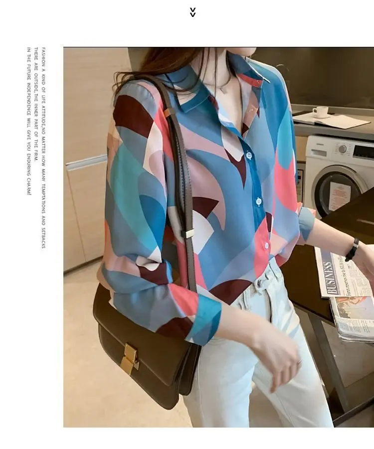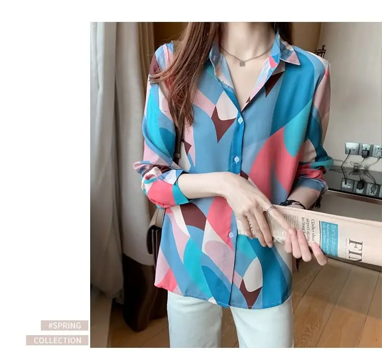 Retro Printed Shirt Women'S Long Sleeve Spring 2024 New Korean Style Fashion Top Crop Top Shirts Women