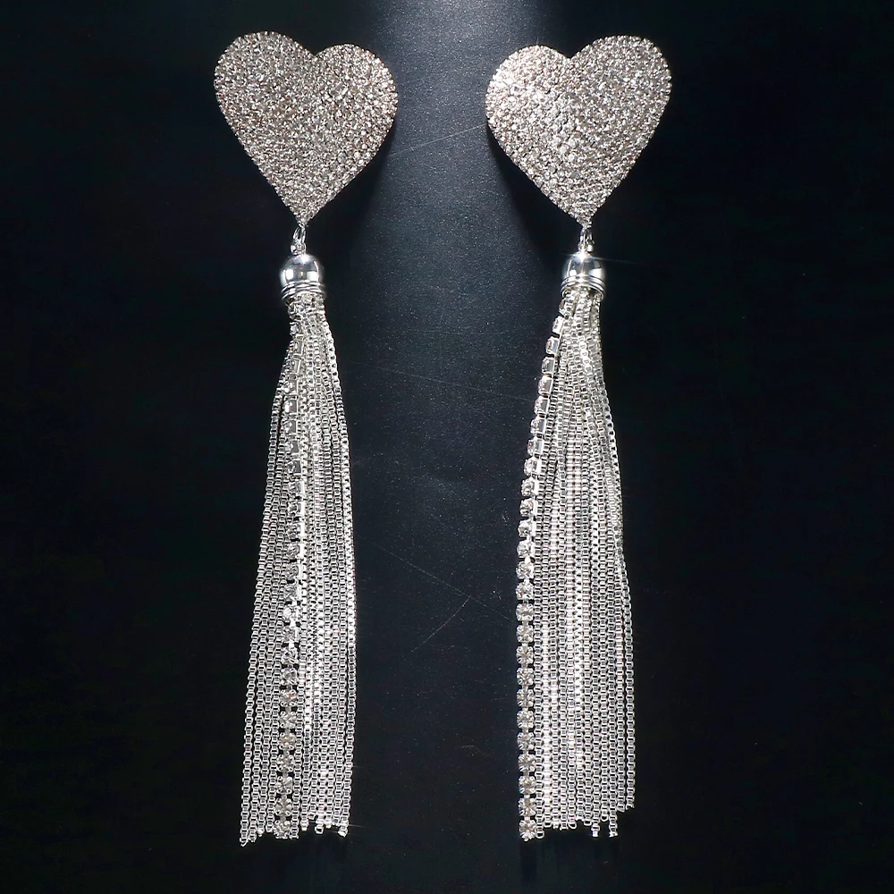 Rhinestone Heart Long Tassel Earrings Luxury Wholesale Boho Tassel Earring Jewelry for Women