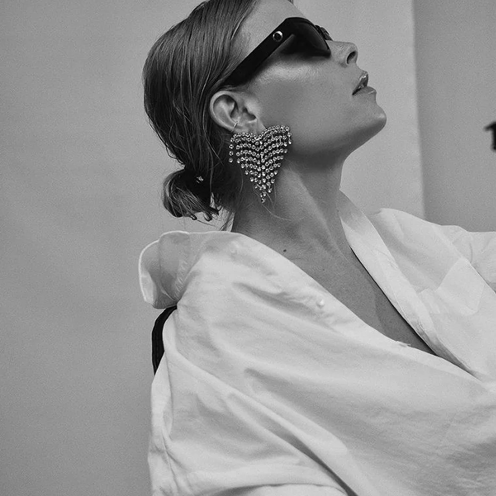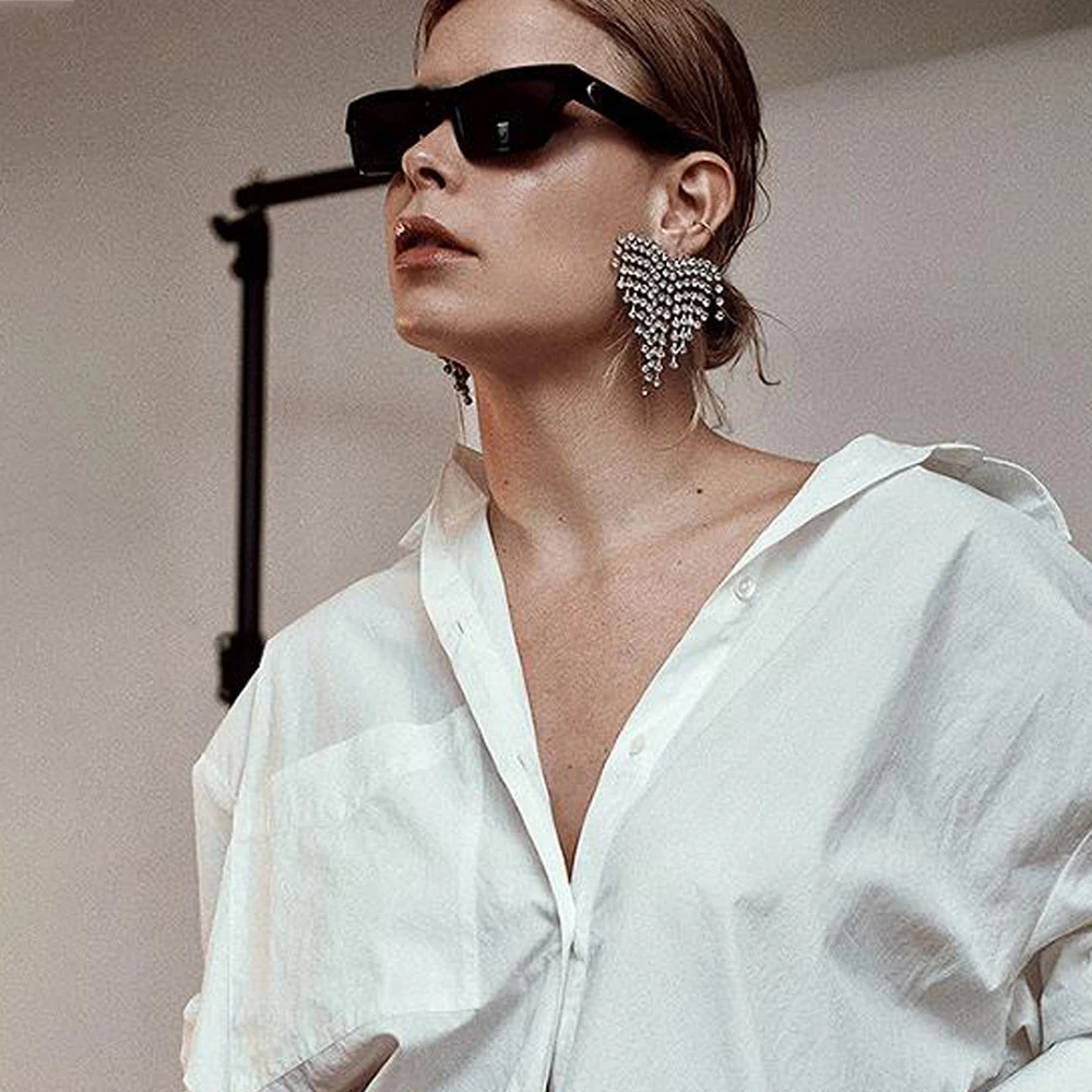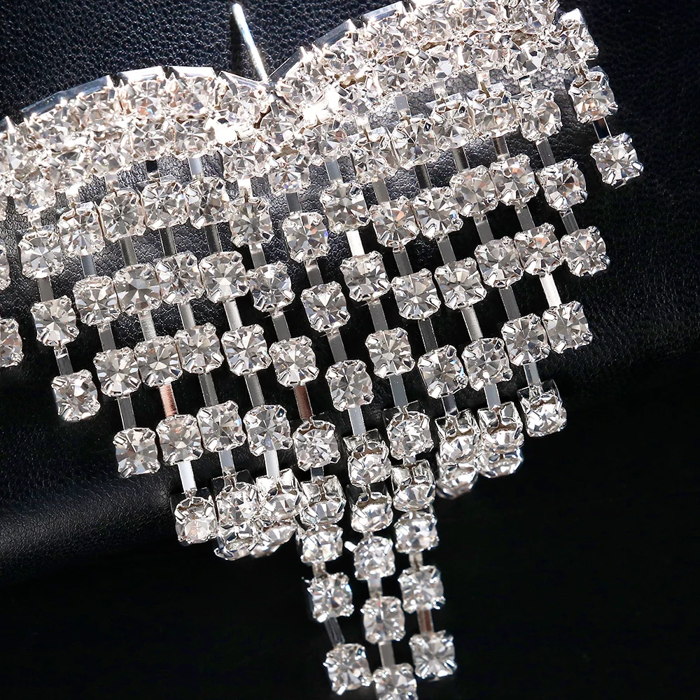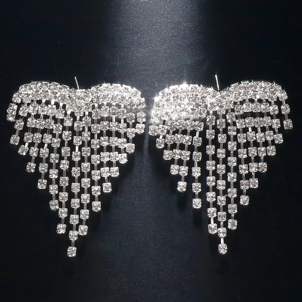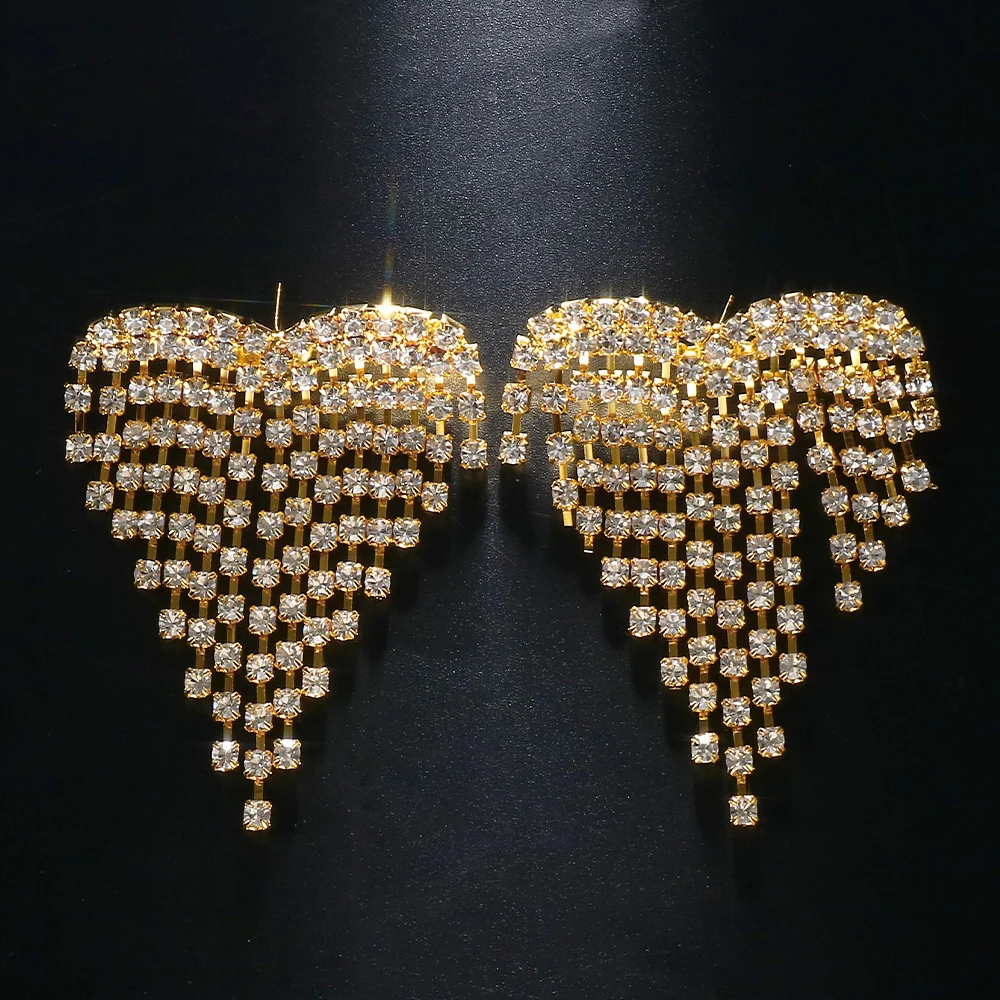 Rhinestone Heart Tassel Earrings Statement for Women Shiny Crystal Fashion Jewelry Earrings Wholesale