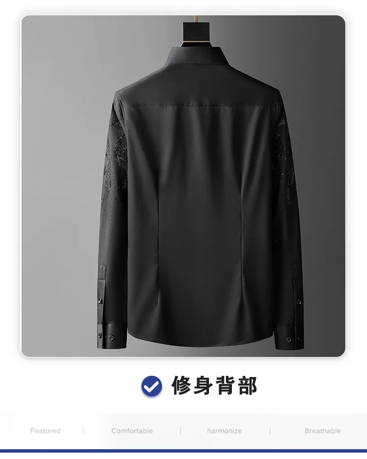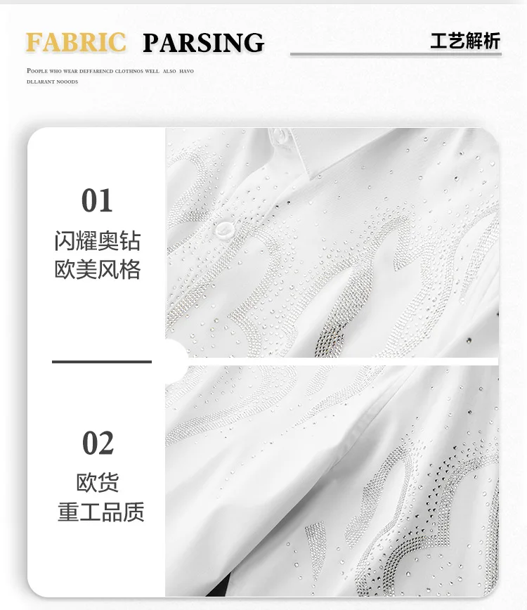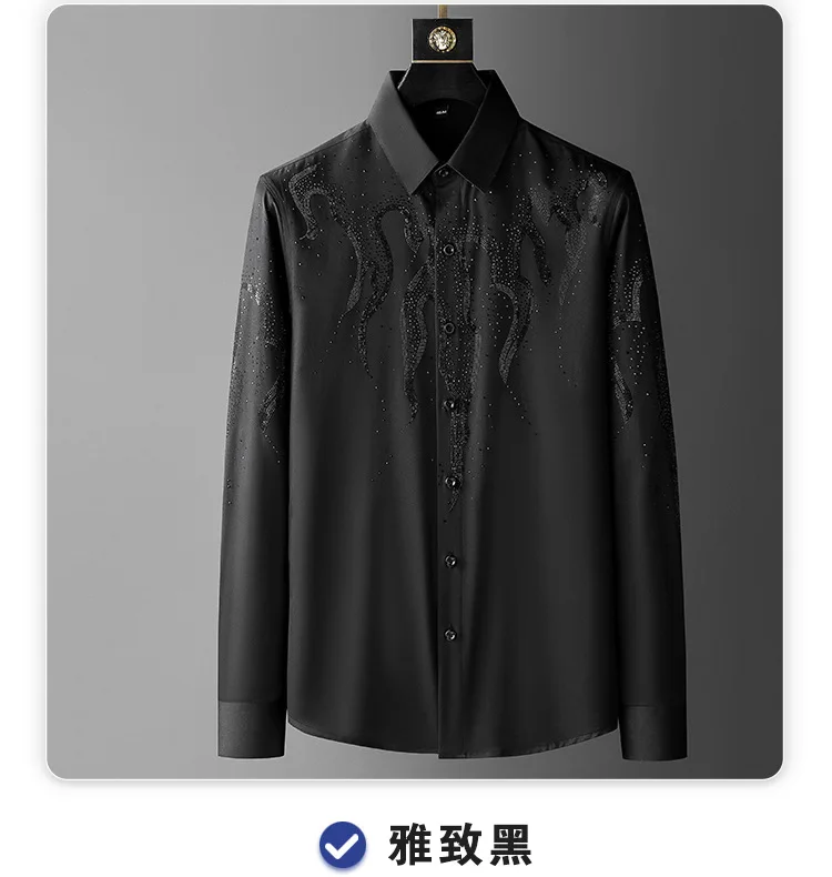 Rhinestones Shirts Mens Luxury Top Diamond Men's Shirt White Black Fire Design Shirt Long Mouw Slim Social Camisa Hombre M-5XL