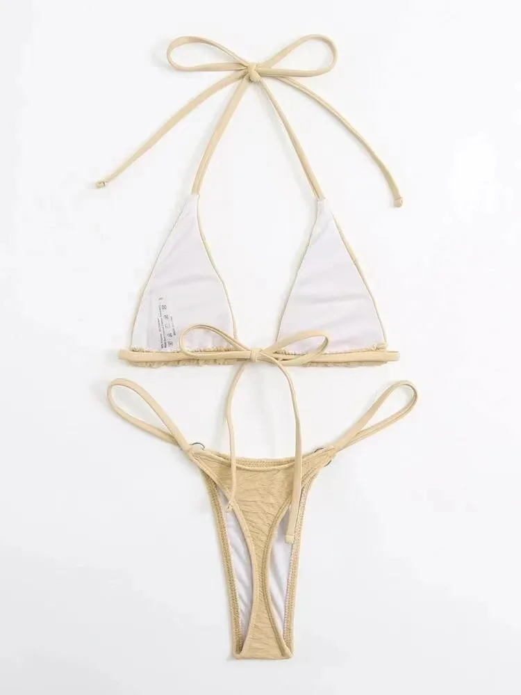 Ribbed Bodysuit Micro Thong Triangle Sexy Bikinis 2023 Fashion Women Swimsuit Wholesale 2 Piece Swimwear Female Bikini Set