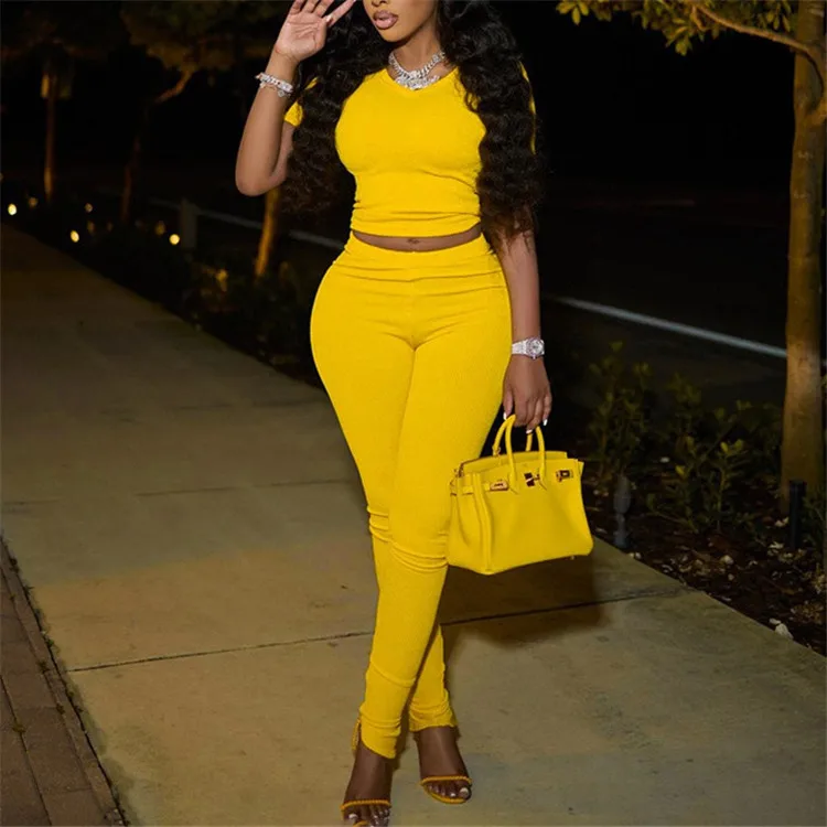 Ribbed Sloid Color Two Piece Set V Neck Top And Pants Sets Comfy Summer Clothes For Women 2024 Casual Outfit