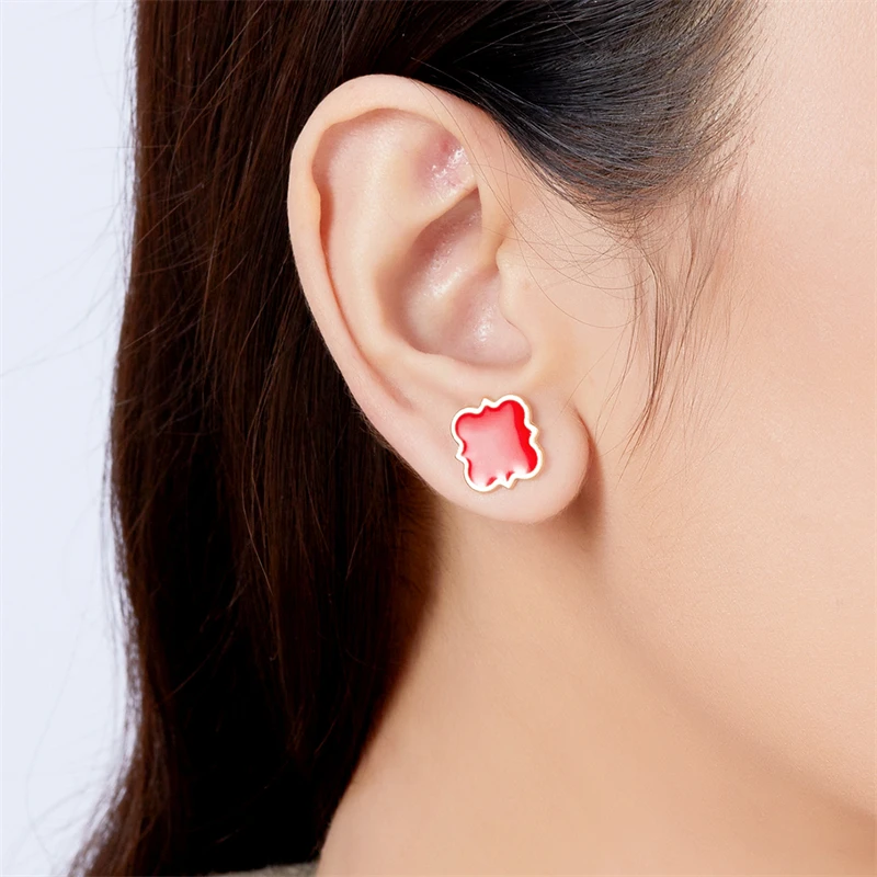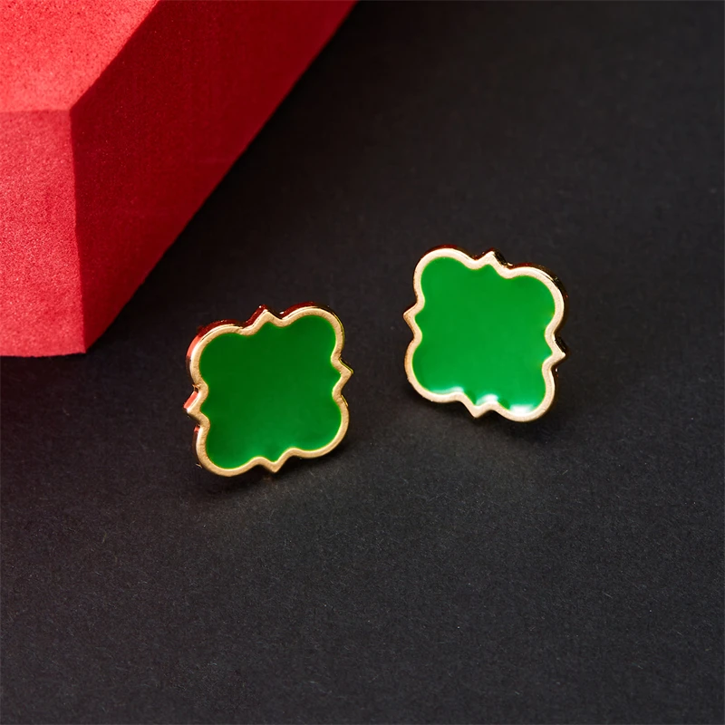 Women's Girls Classic Cute Fresh Green Lucky Four-Leaf Clover Shape Ear Stud Earrings Fashion Jewelry