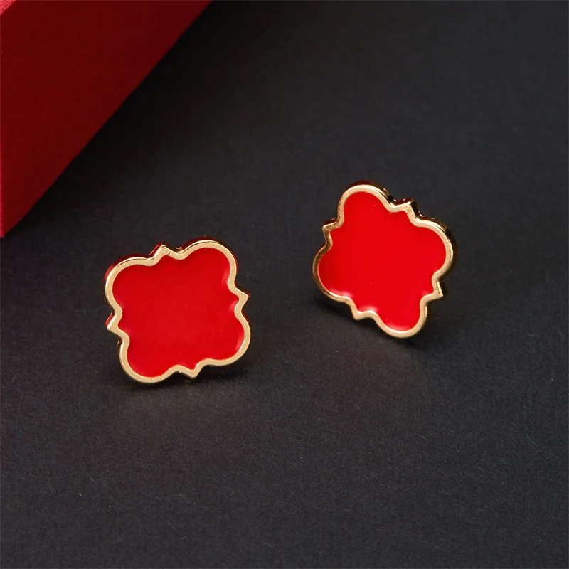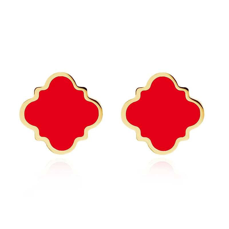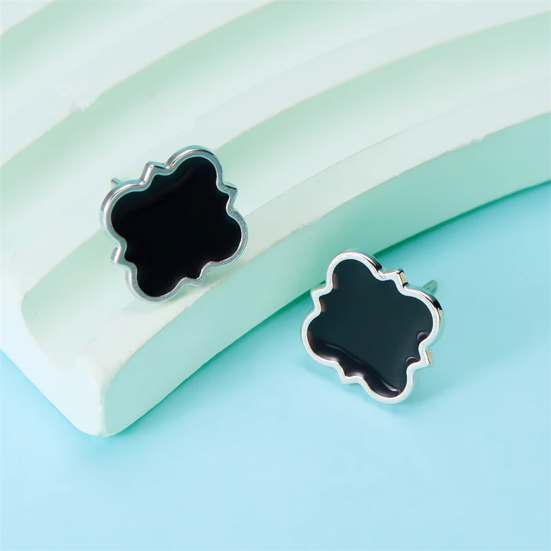 Rinhoo Black Color Ear Women's Girls Classic Cute Fresh Lucky Four-Leaf Clover Shape Ear Stud Earrings Fashion Jewelry