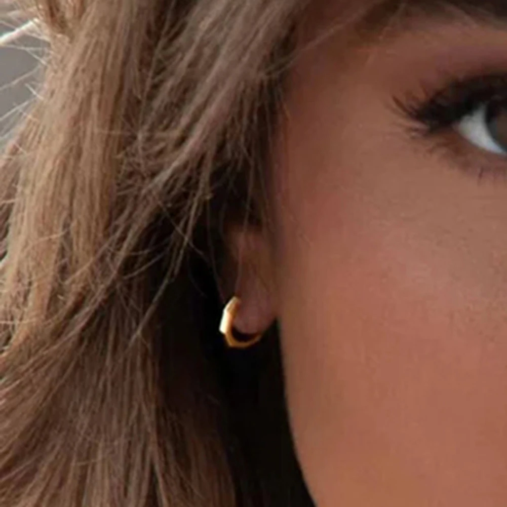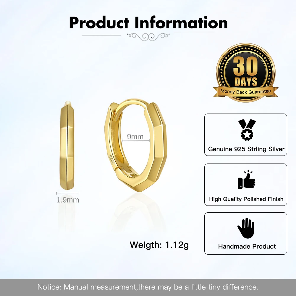 RINNTIN APE91 Fine Jewelry Minimalism 925 Sterling Silver Earrings 14K Gold Plated Huggie Hoop Earrings