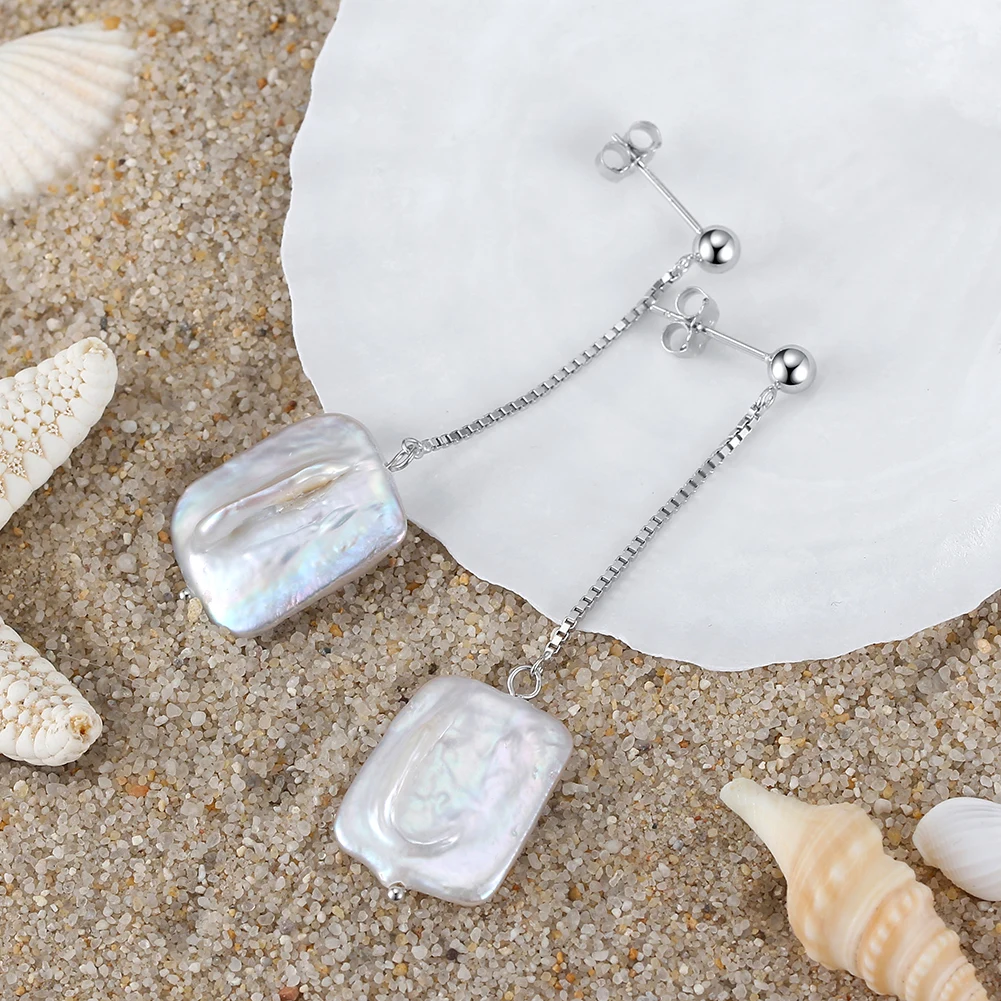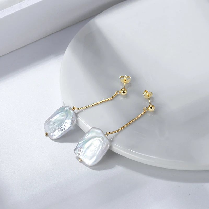 Rinntin GPE05 S925 Silver Pearl Jewelry 14K Gold Baroque Irregular Freshwater Dangle Pearl Earring For Women