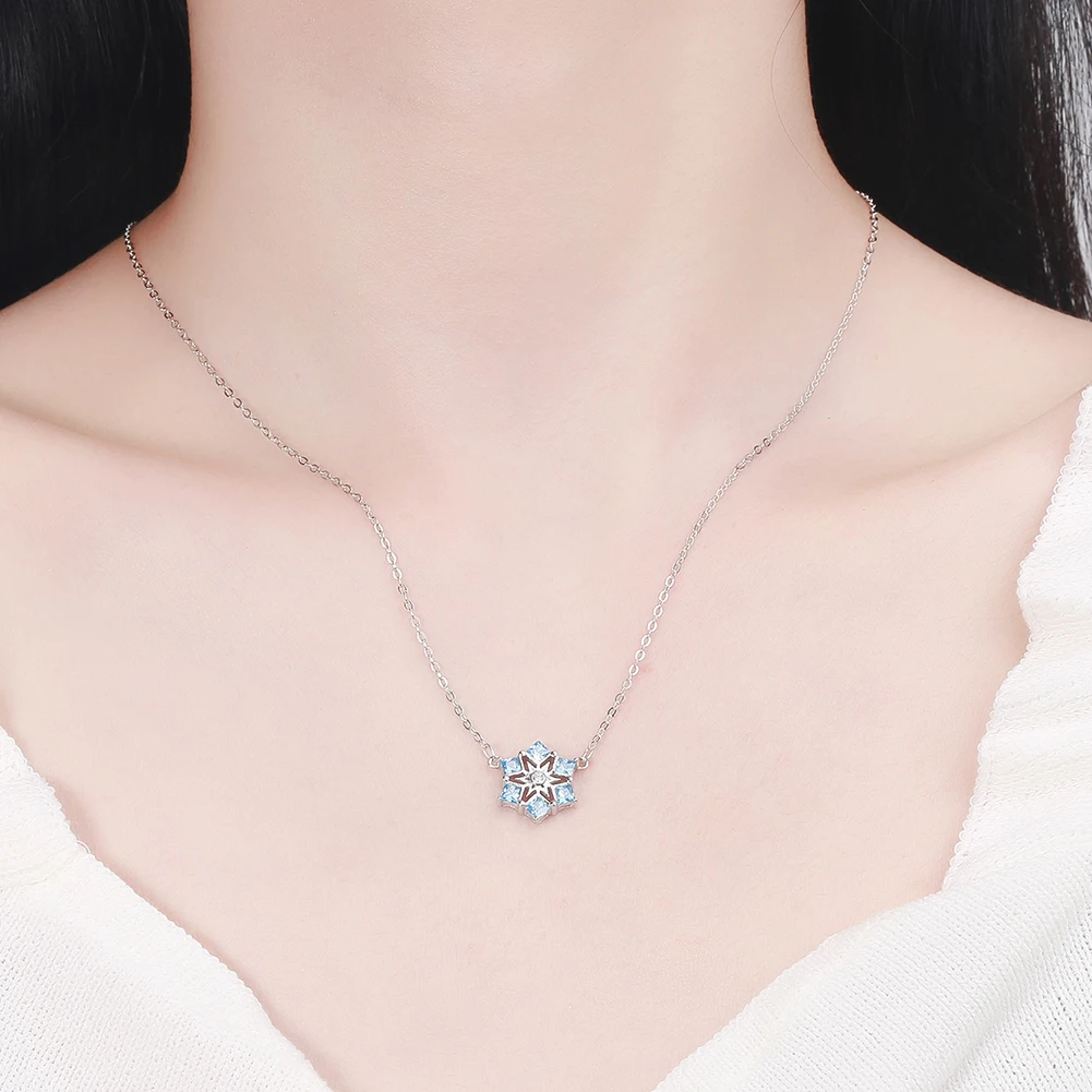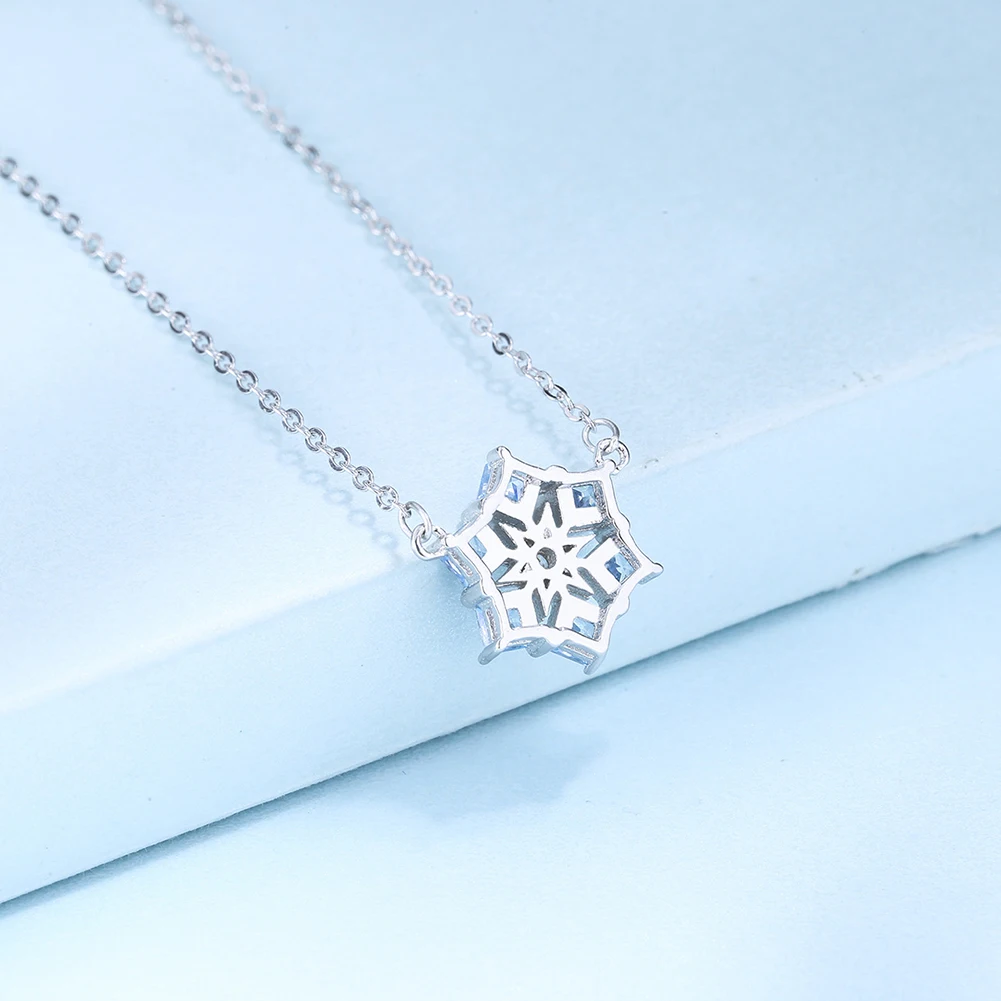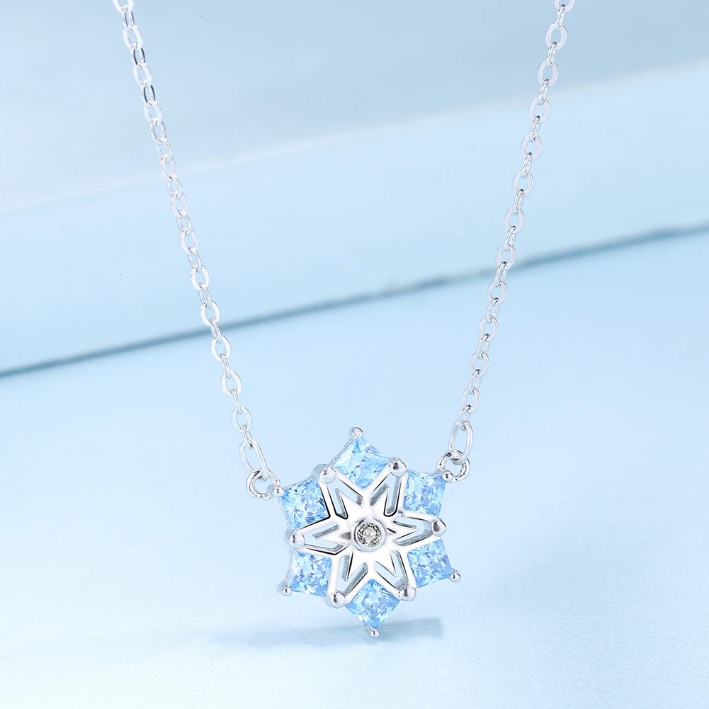 RINNTIN HON09 Latest Design Blue Cubic Zircon sapphire Snowflake Pendant Necklace 925 Sterling Silver Jewelry For Christmas