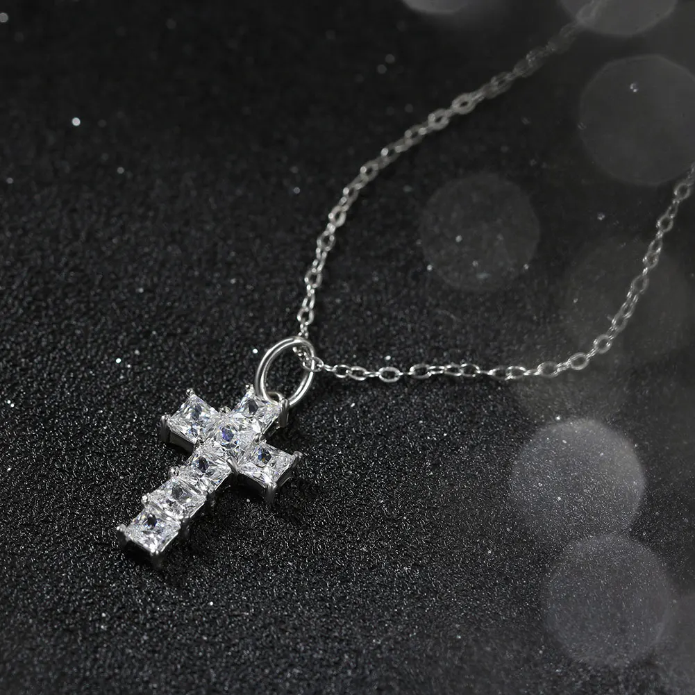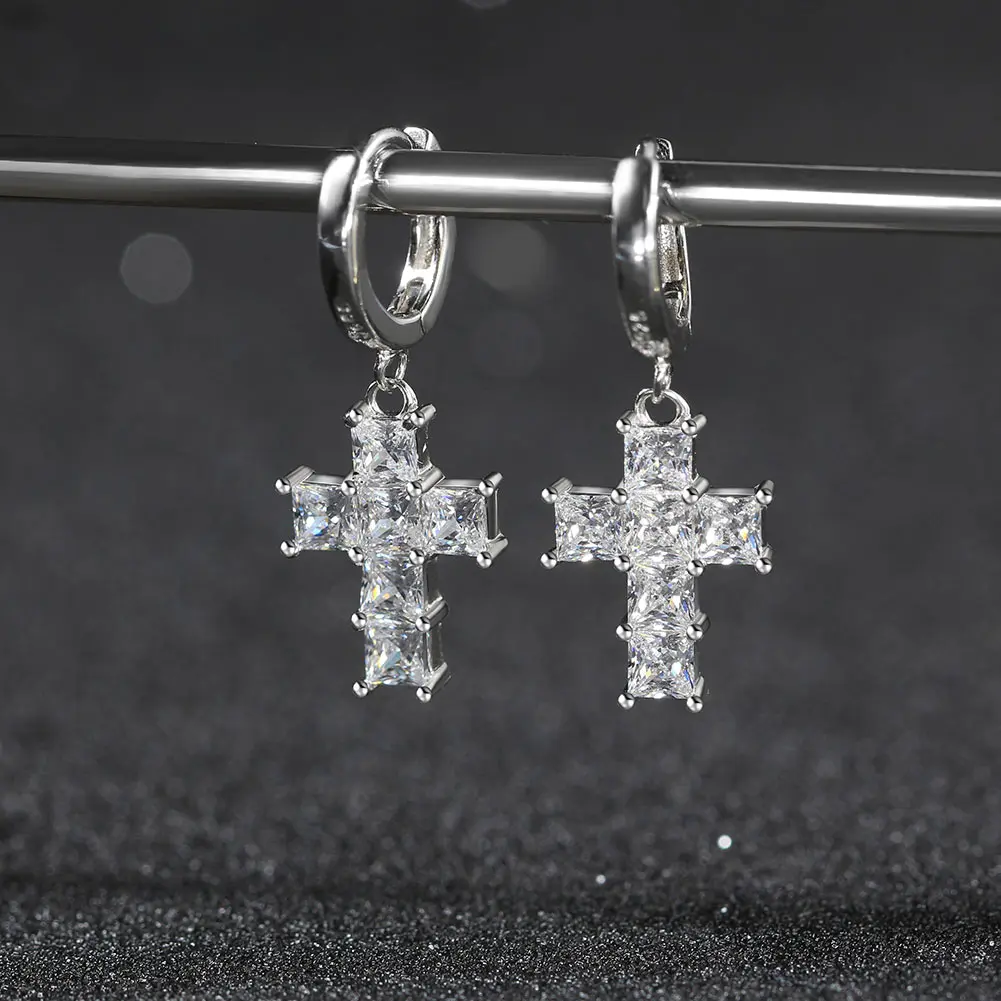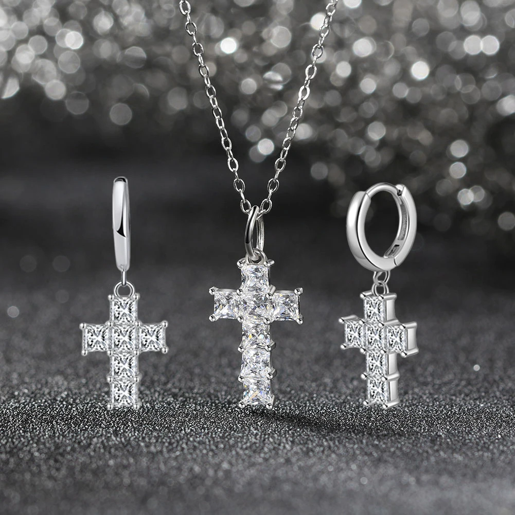 RINNTIN LZN12 Classic High Quality 8A Zirconia Religious Jewelry Charm Christian Cross Chain Necklace Drop Earring For Men Women