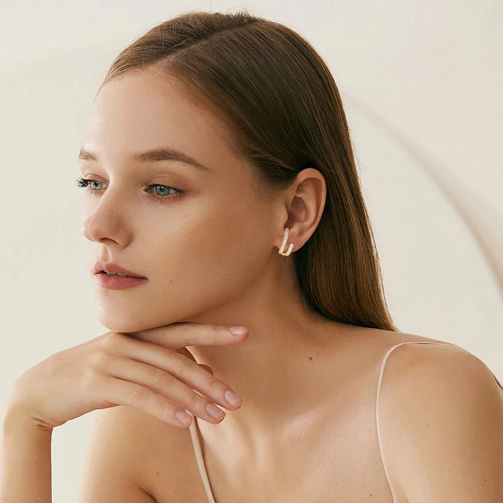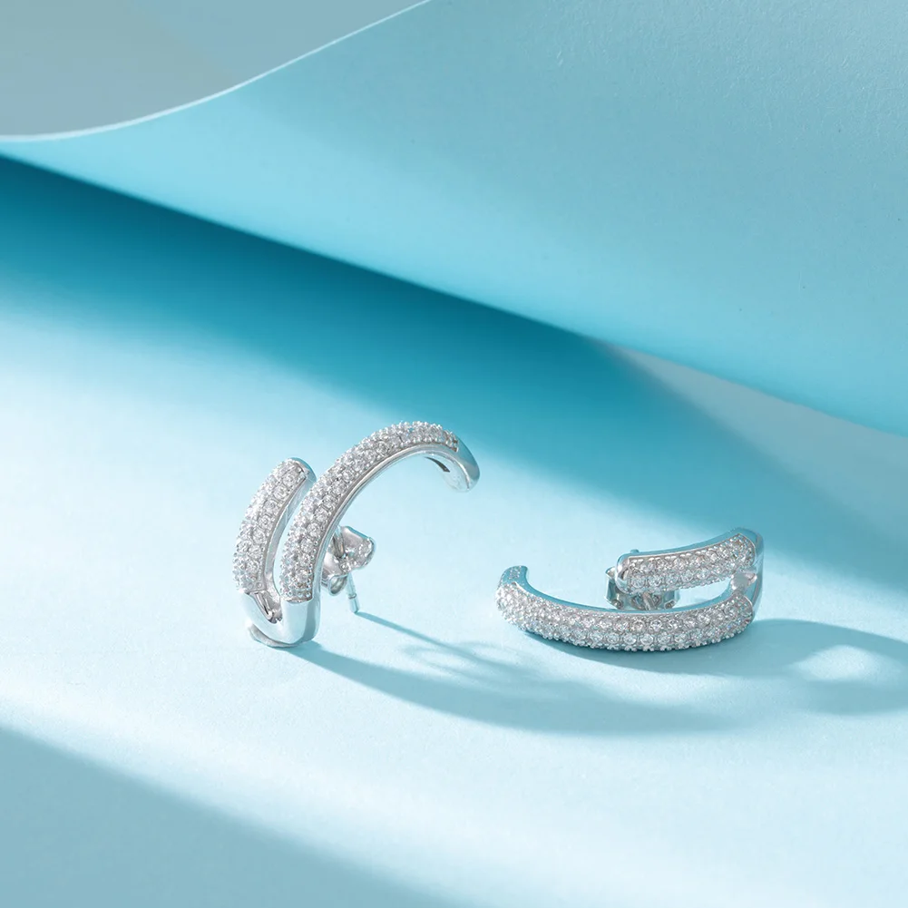 RINNTIN SE391 Fine Jewelry 925 Sterling Silver Earrings Wholesale U Shaped Cubic Zirconia Stud Earrings