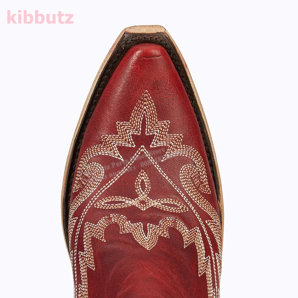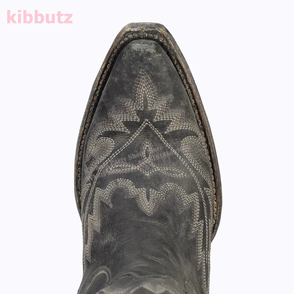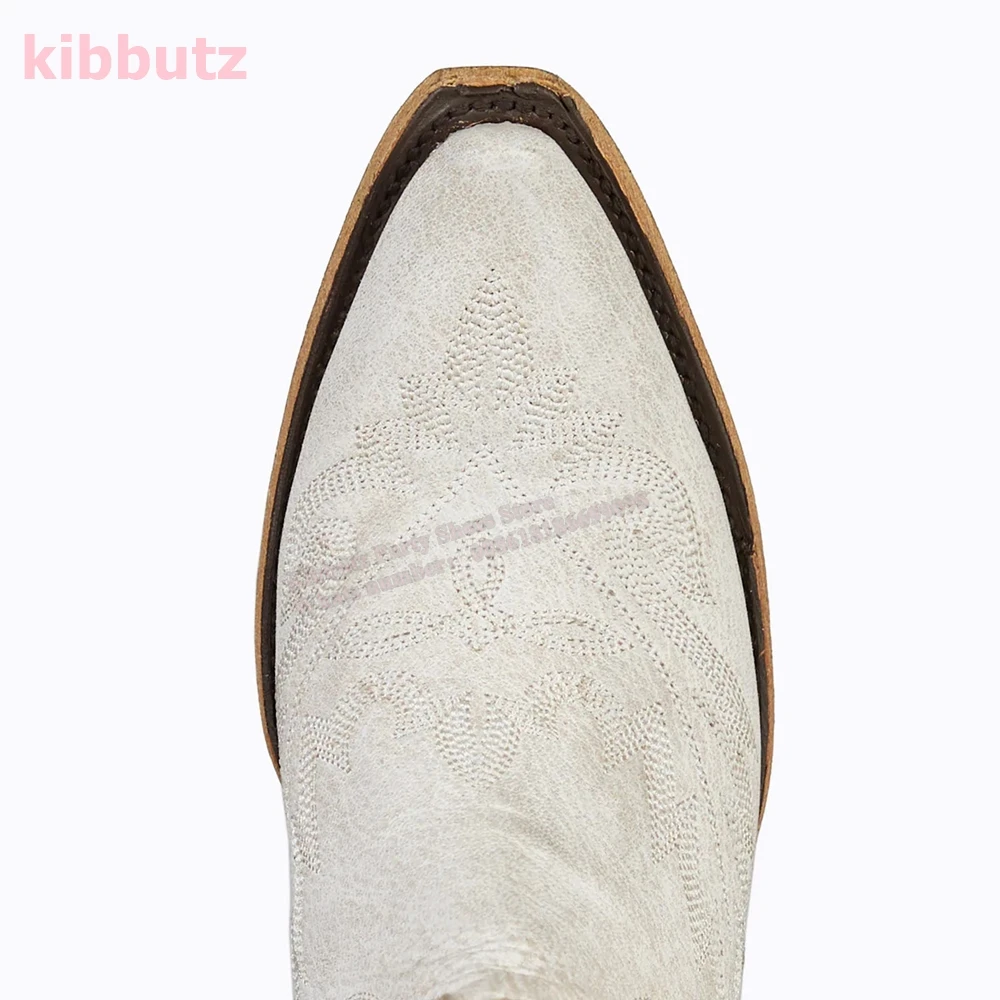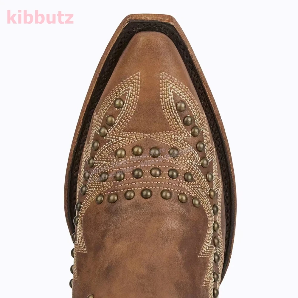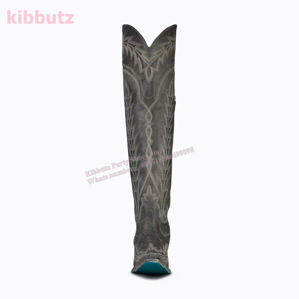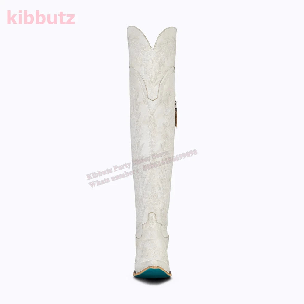 Rivet Cowboy Vintage Boots Over The Knee High Embroidery Lace-Up Luxury Leather Pointed Toe Chunky Heels Fashion Concise Shoes