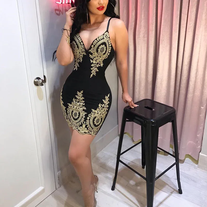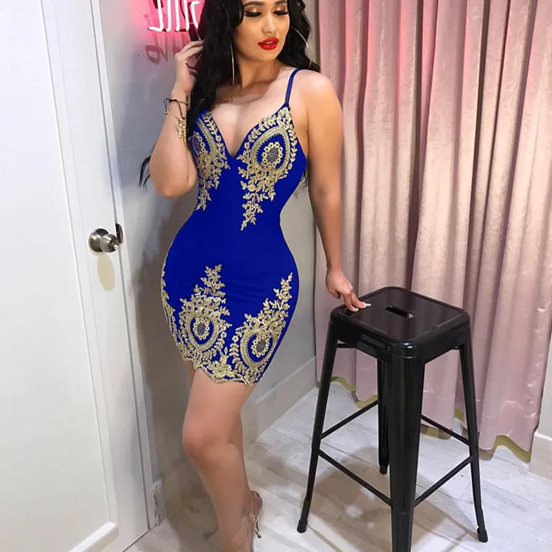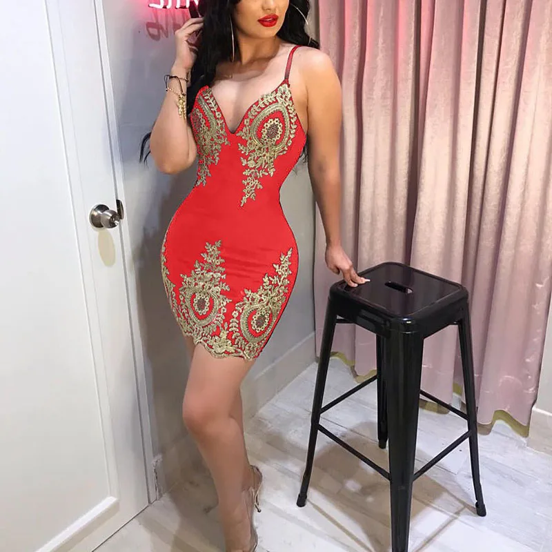 RNSHANGER Summer Women Embroidery Dress Sexy Sleeveless V-neck Party Club Short Mini Dress Elegant Evening Bodycon Women Dresses