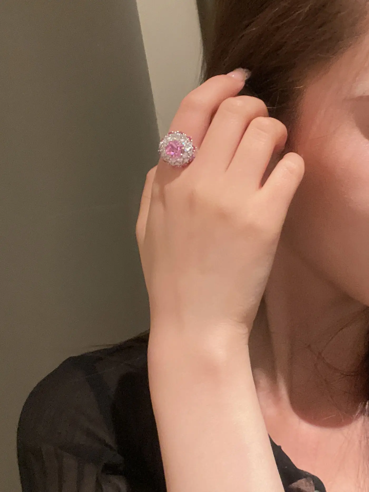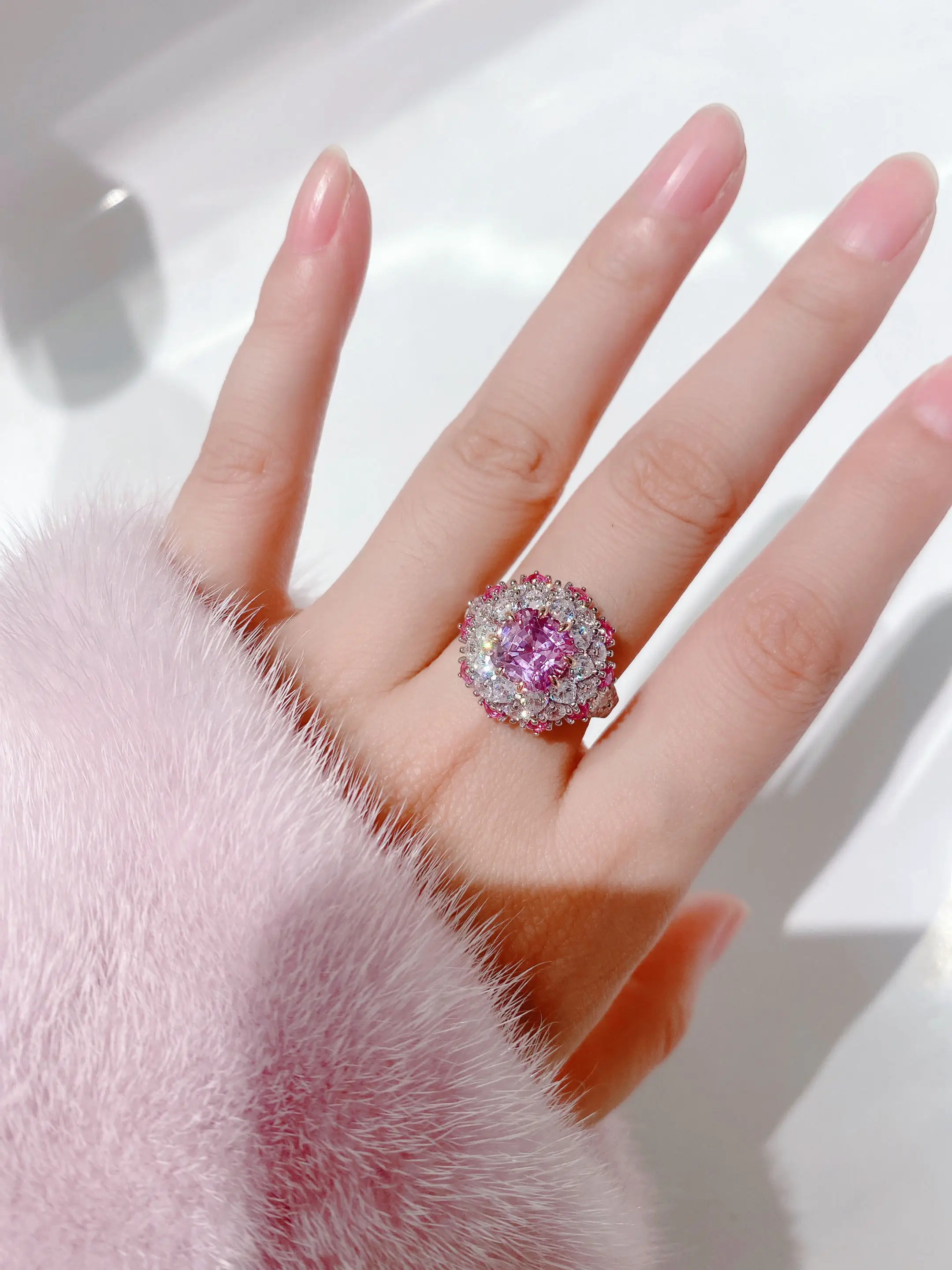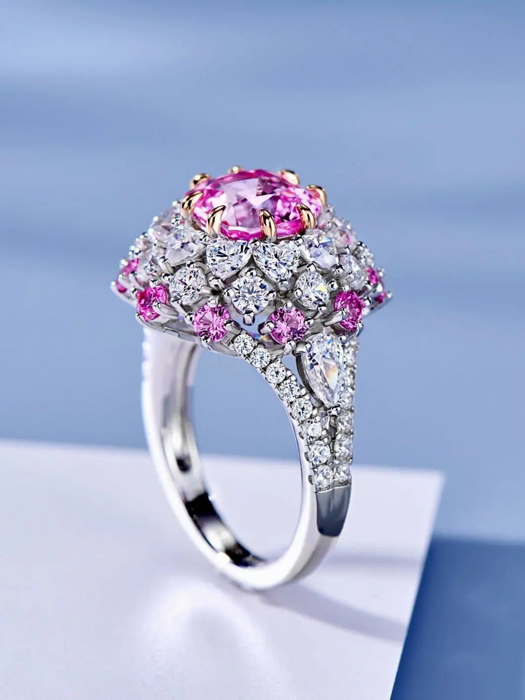 Rochime luxury Papalacha flower pink gemstone rings 925 sterling silver gold plated fine jewelry for women