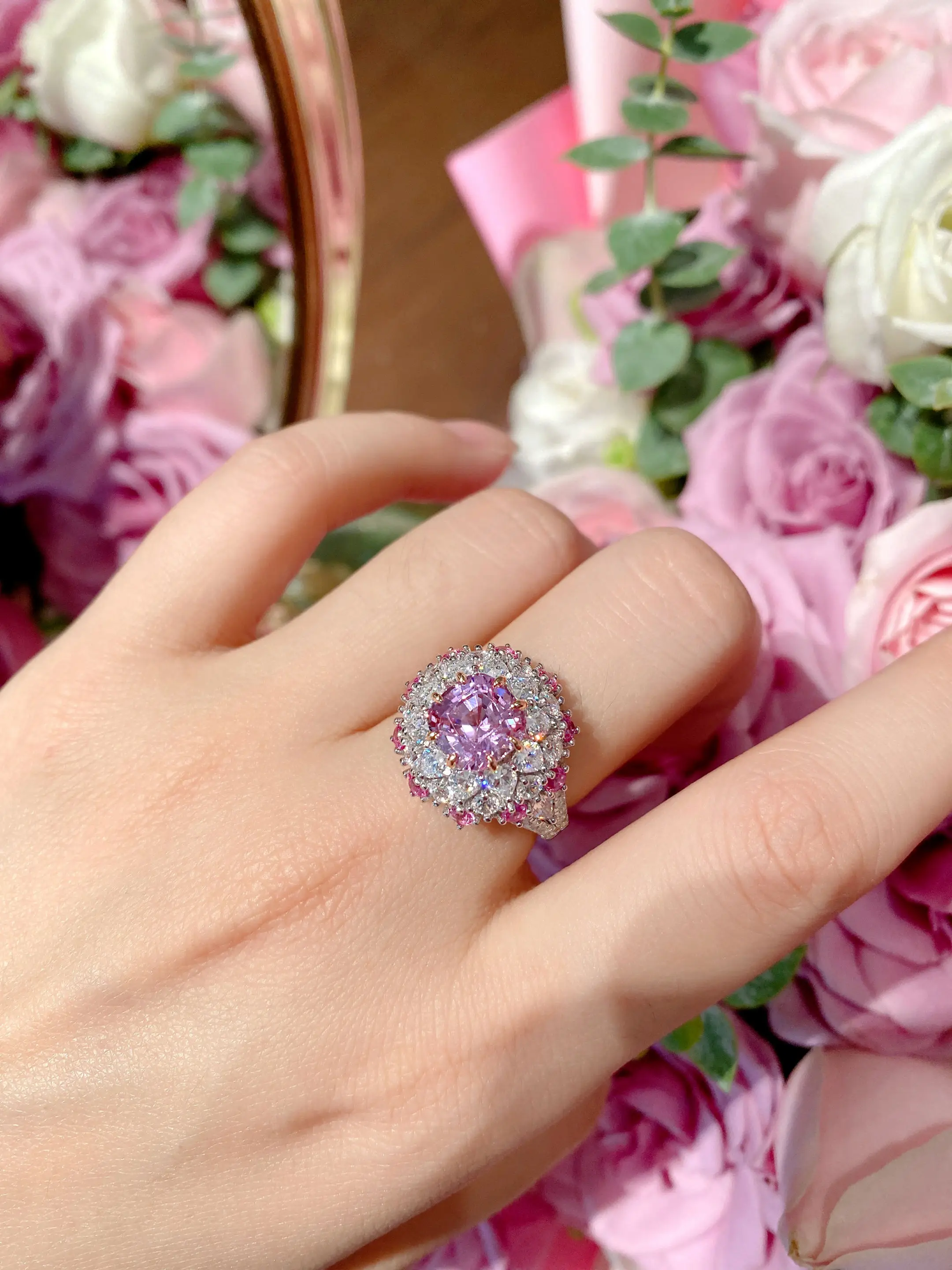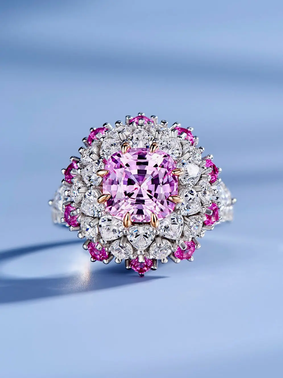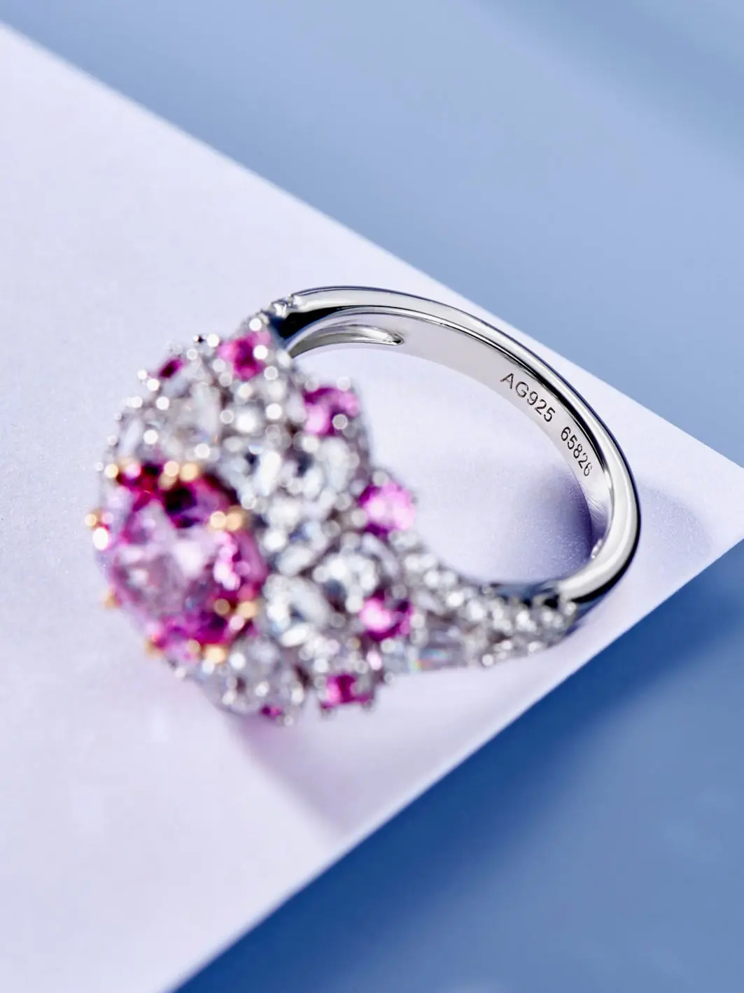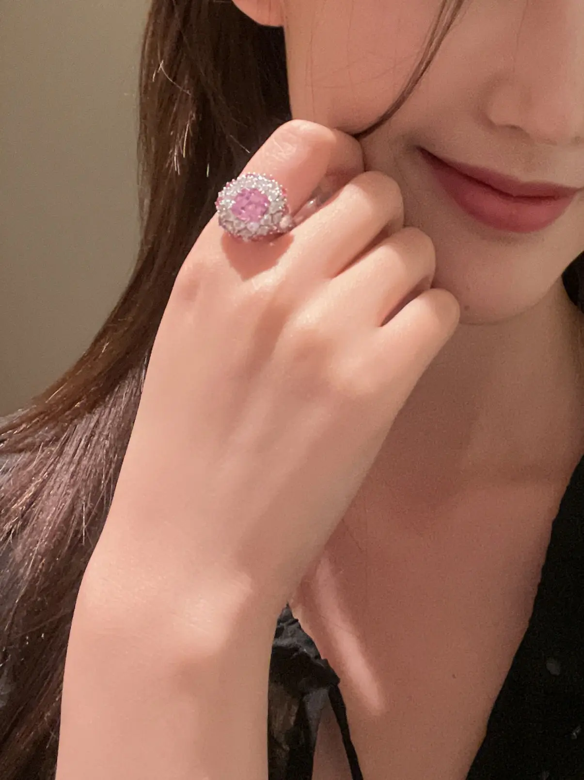 Rochime luxury Papalacha flower pink gemstone rings 925 sterling silver gold plated fine jewelry for women