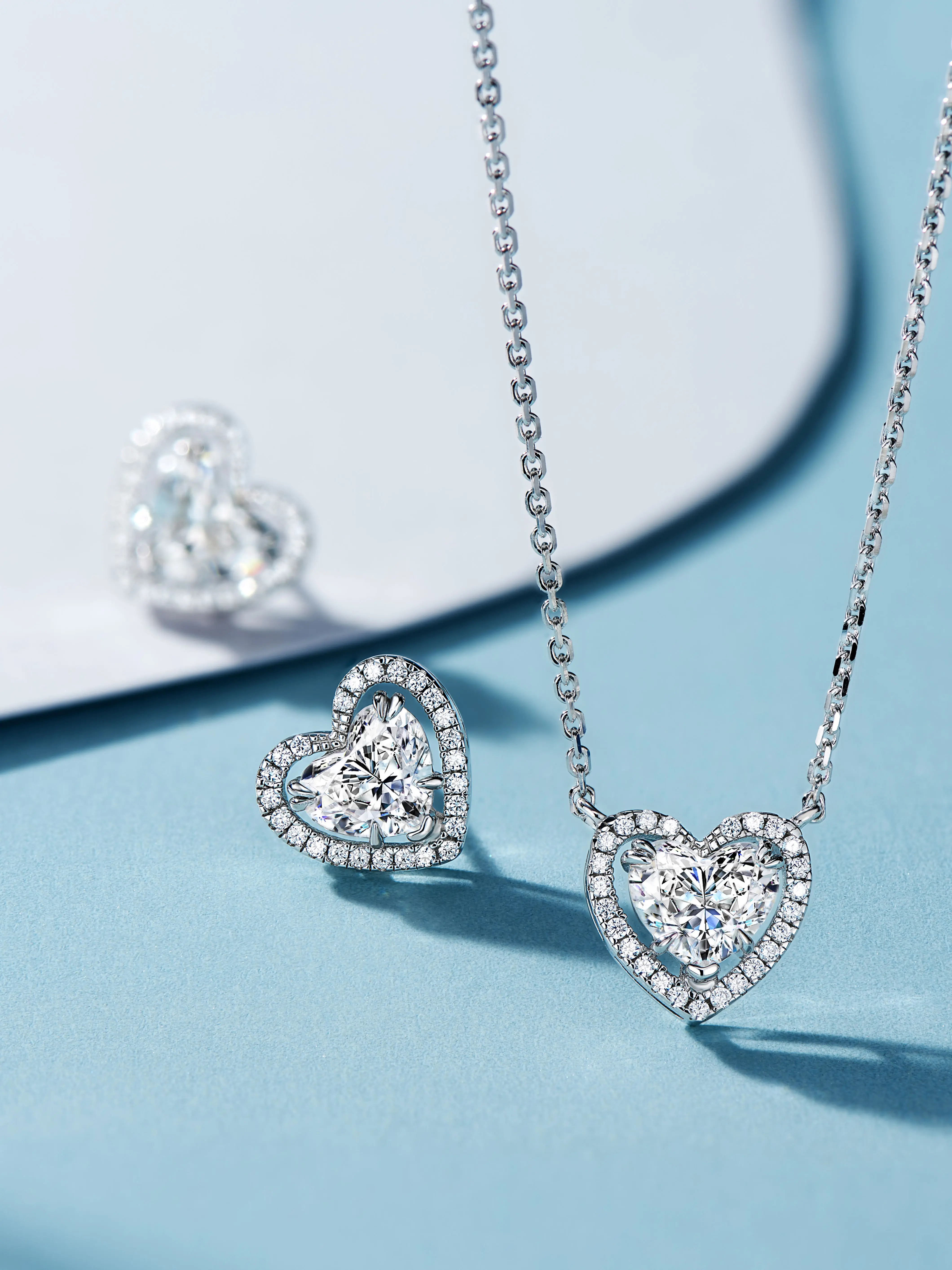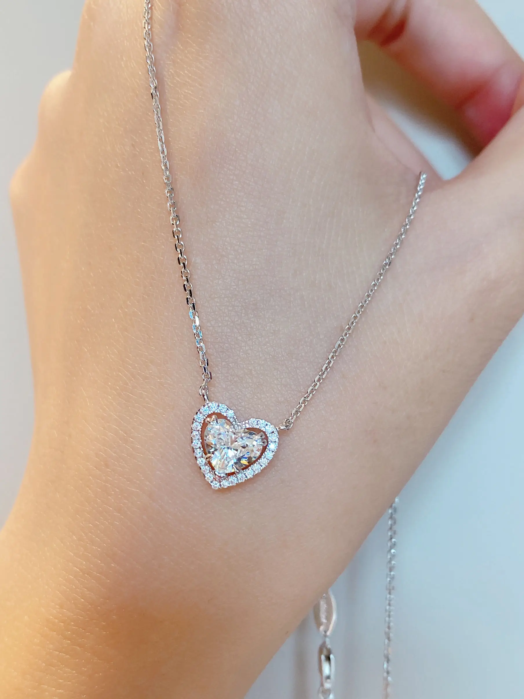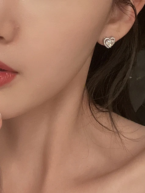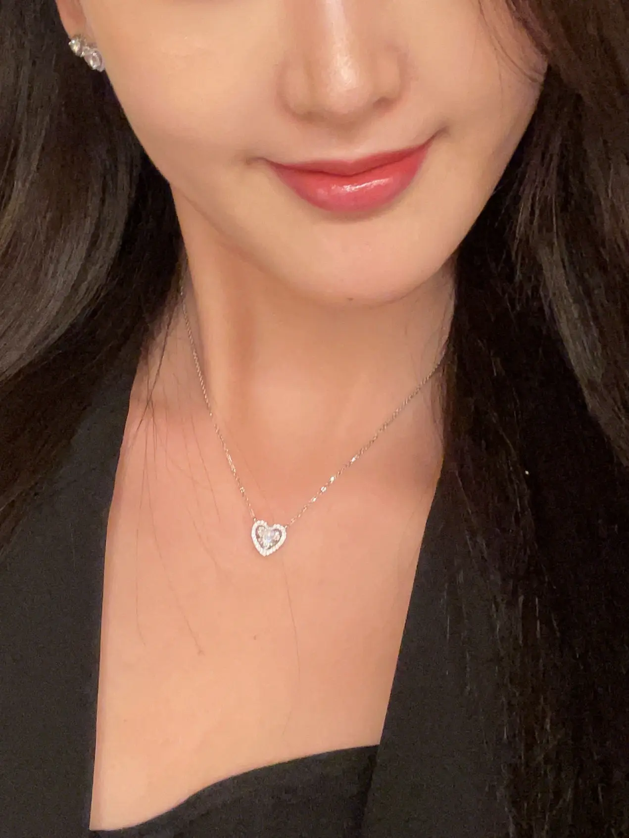 Rochime personalized jewelry set love heart diamond necklace earring silver 925 rhodium plated jewelry