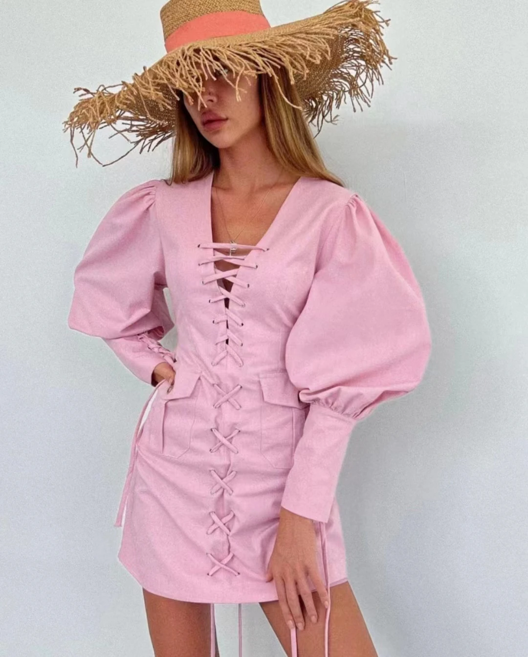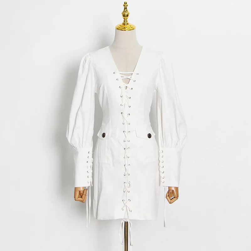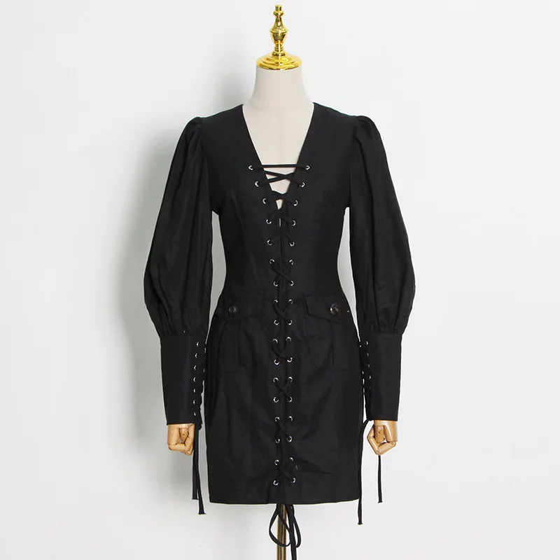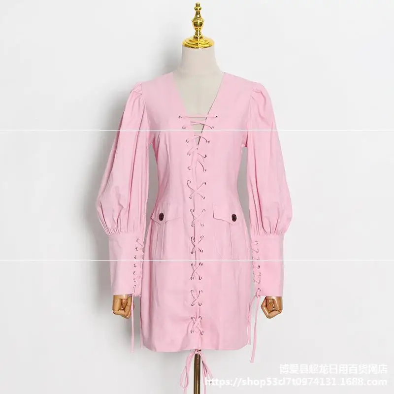 Ropa Casual Fall 2022 New Fashion Dresses Solid Deep V-neck Hip Mini Women Dress