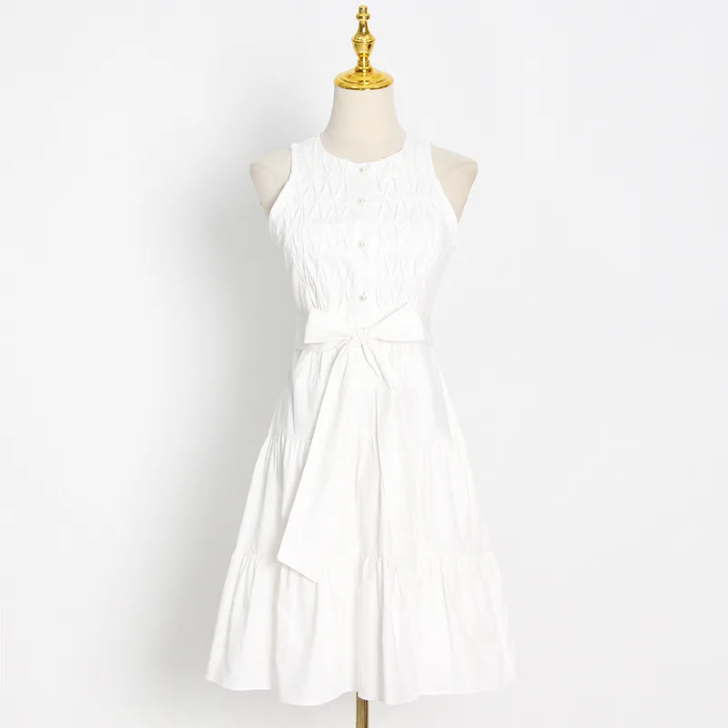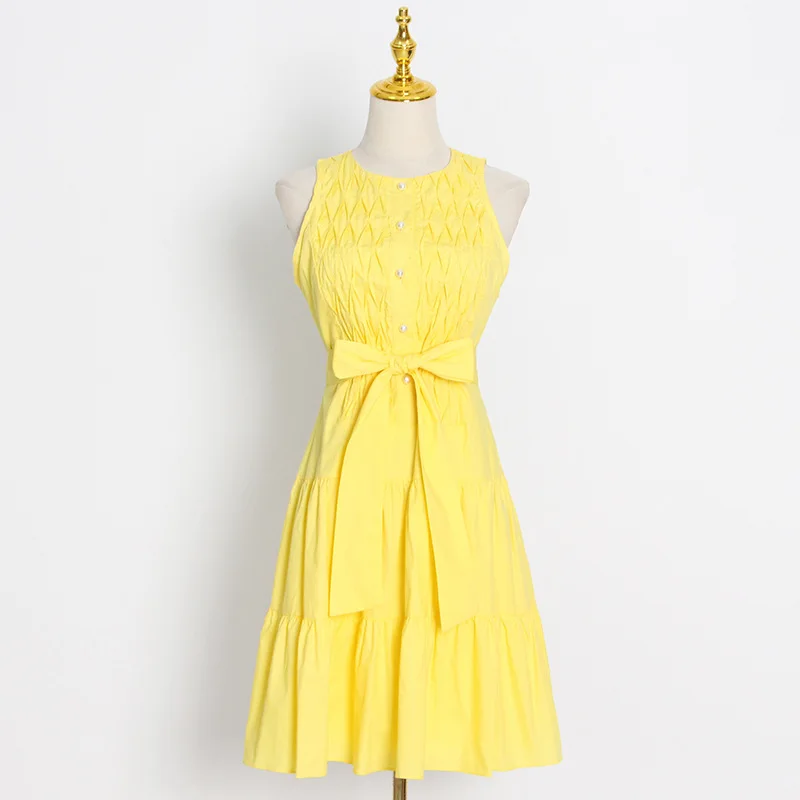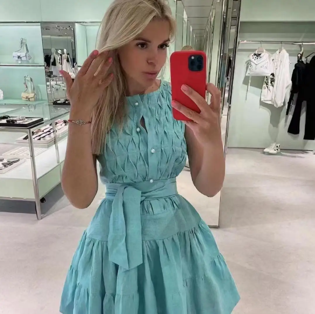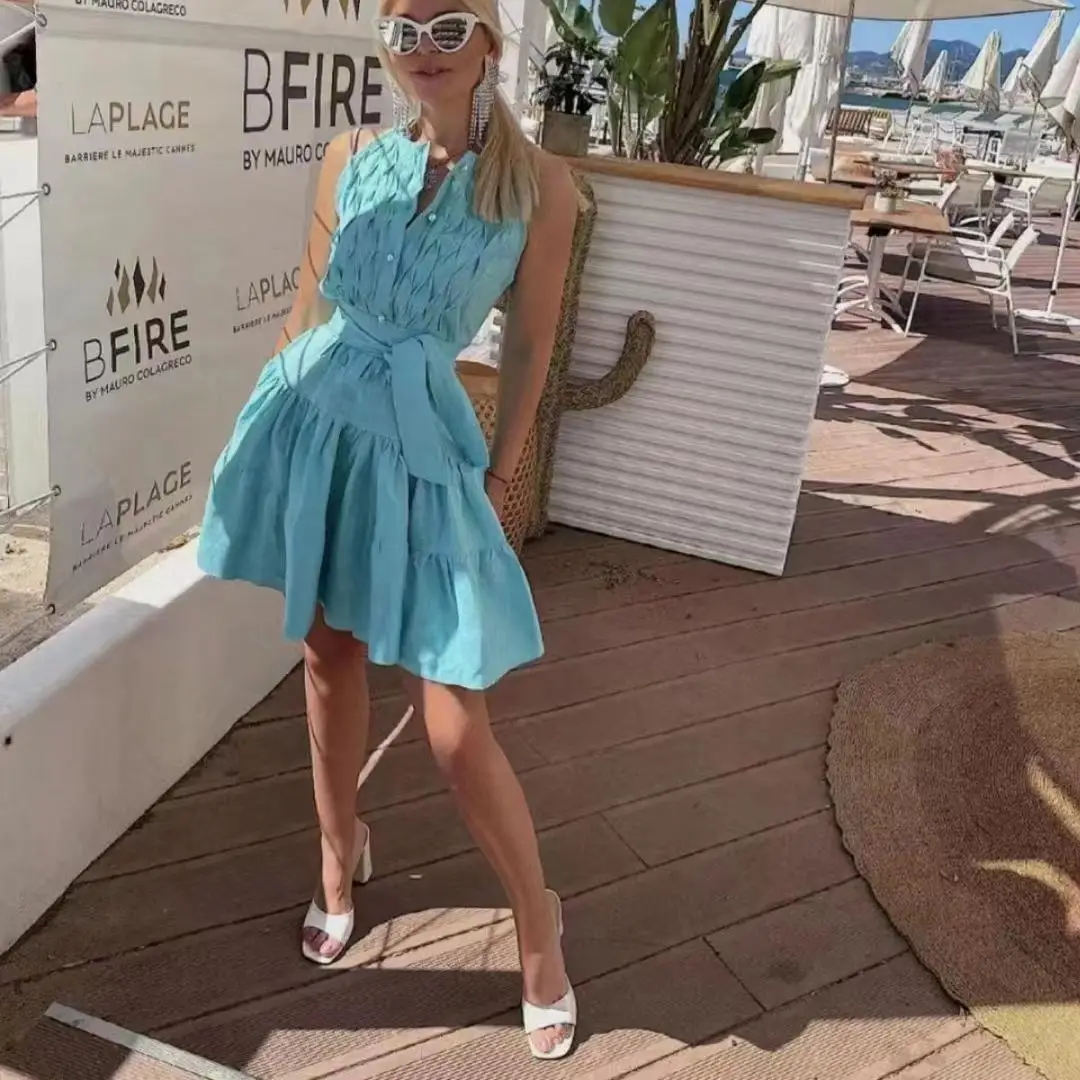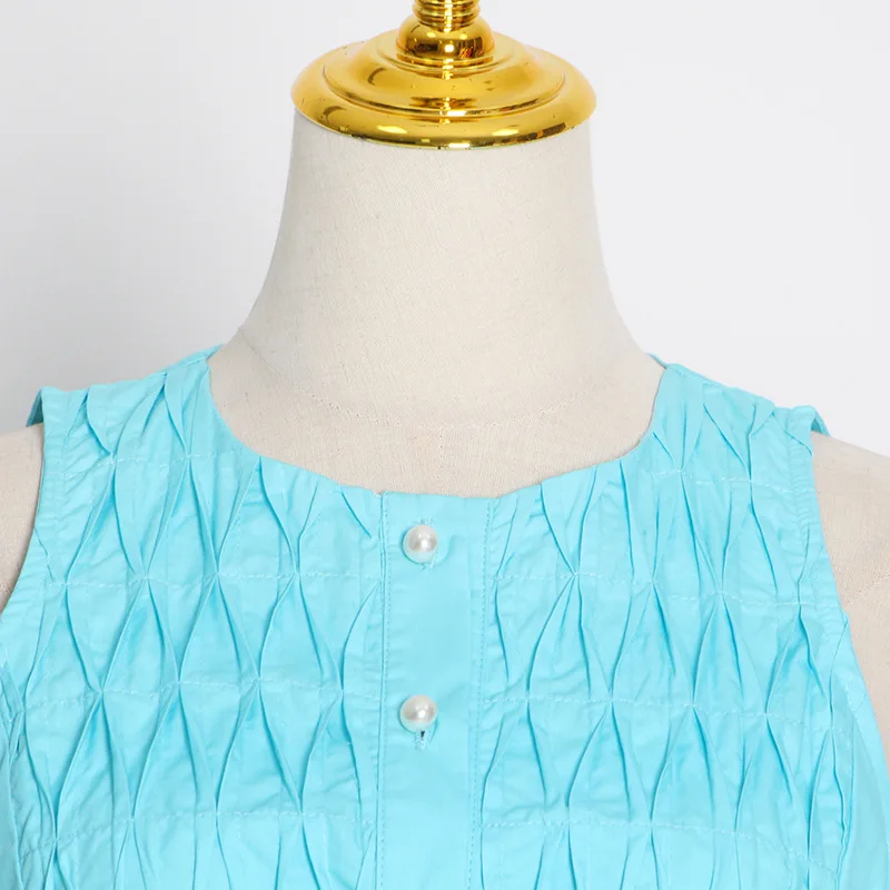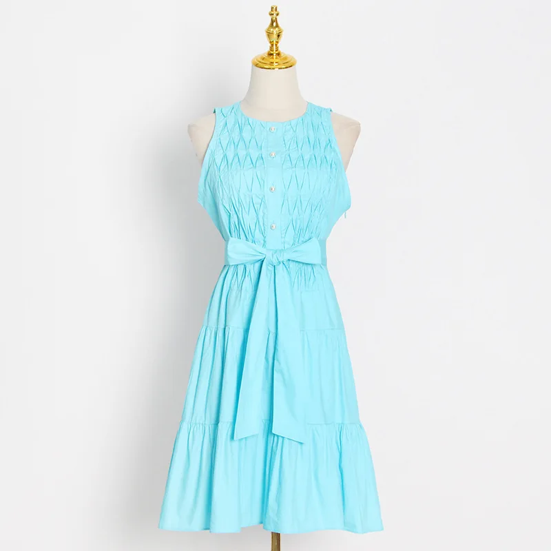 Ropa De Dama Fashionable Sleeveless Pleated Slim Fit Dress 2022 Summer New Sweet Style Mid-Length A-Line Skirt