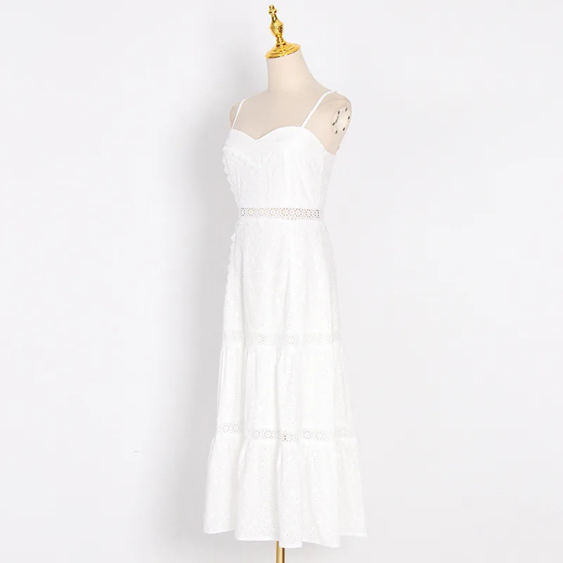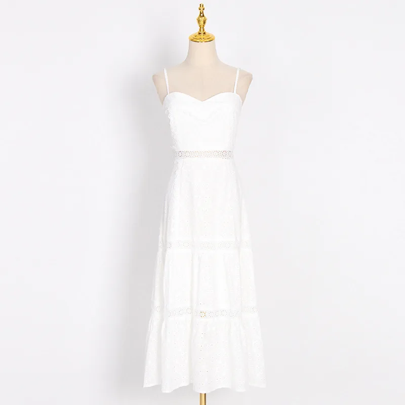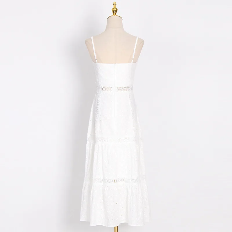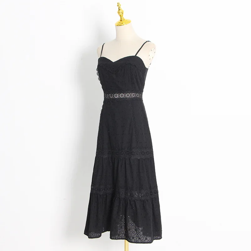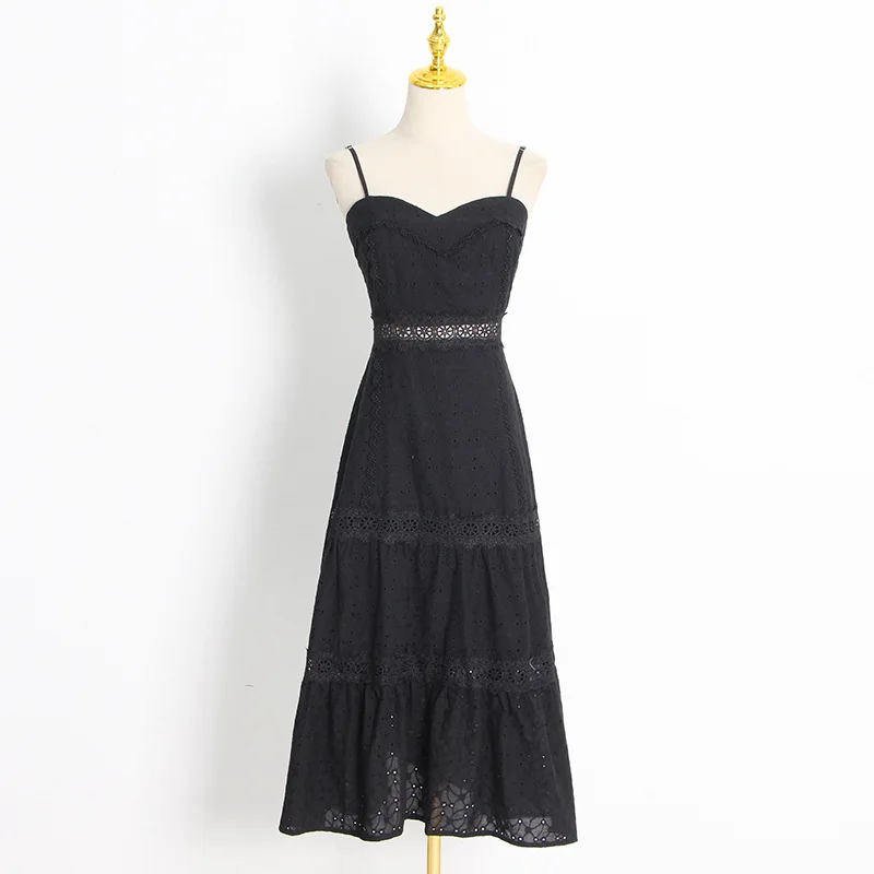 Ropa Para Dama Sexy Solid Color Long Dress 2022 Autumn V-neck Hollow Sleeveless Waist Thin Ruffle Dress