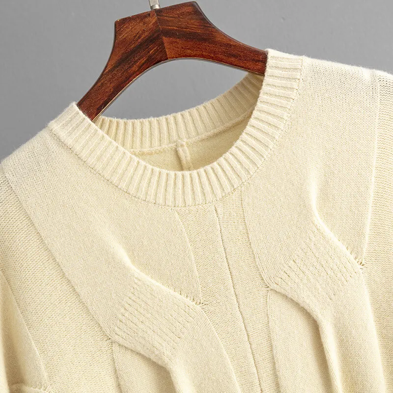 Round Neck Loose Solid Color Simple Ladies Cashmere Wool Sweater Wool Knitted Sweater