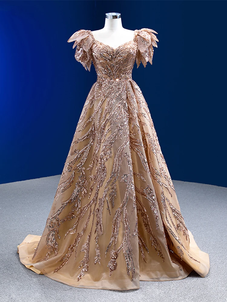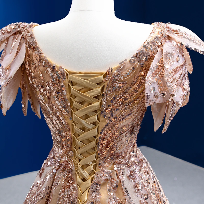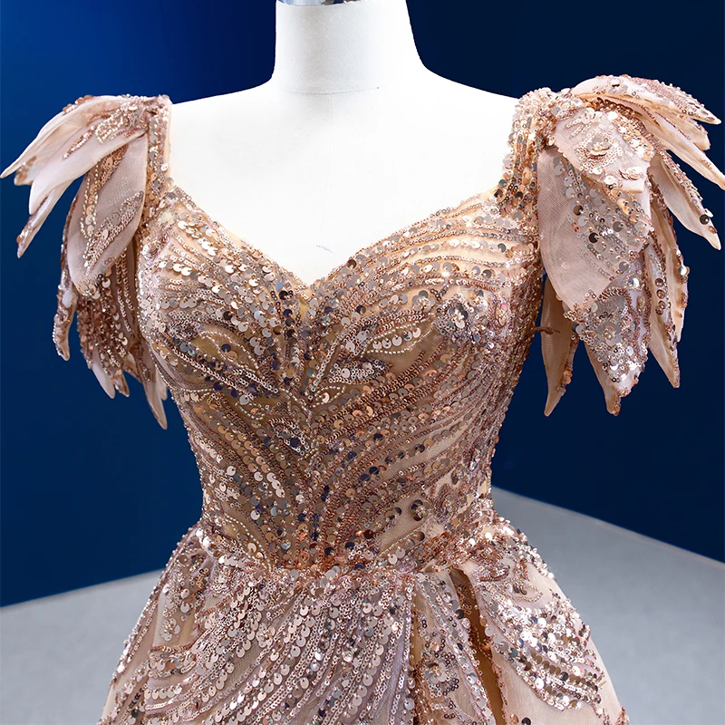 RSM222203 Top Quality Women V Neck Sexy Sequined Ball Gowns Elegant Evening Party Dress