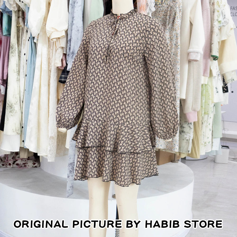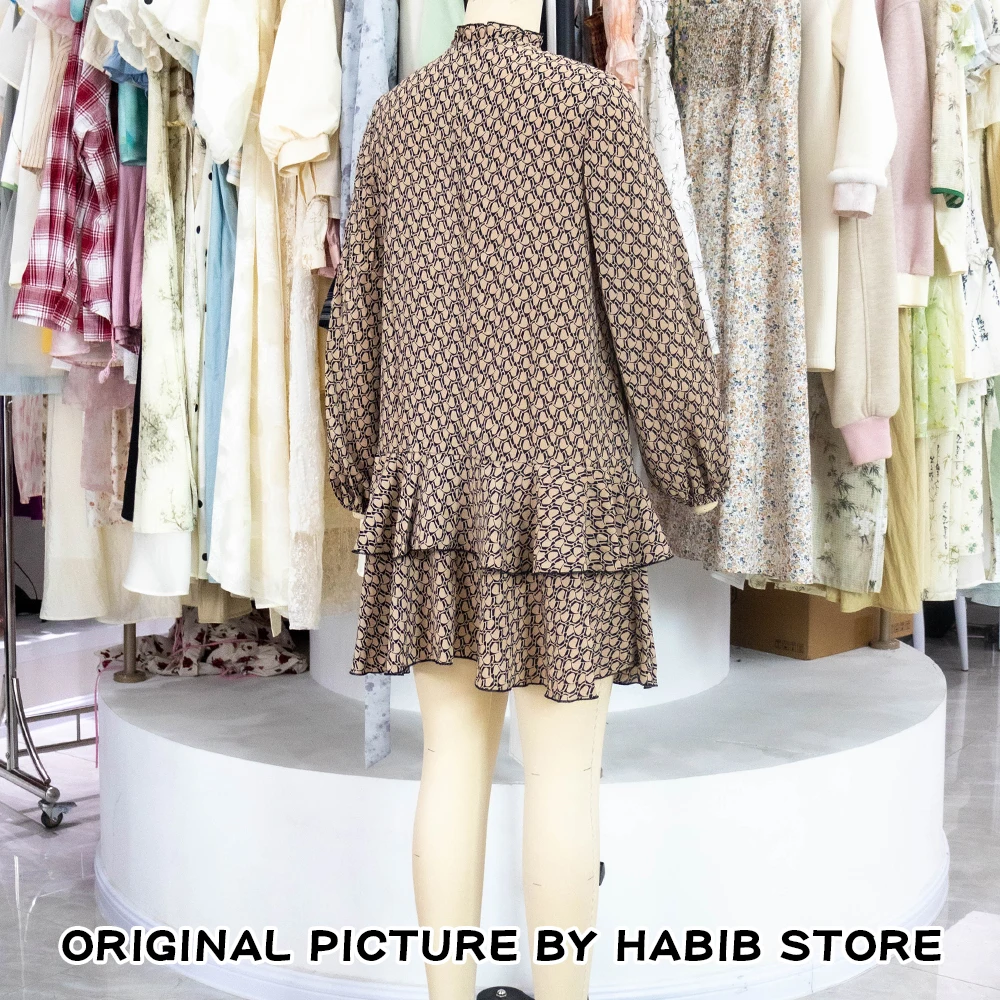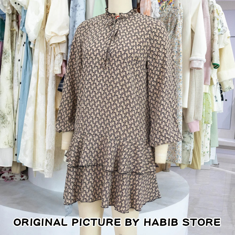 Ruffled Bow Knit Mini Dress Women's Summer Paisley Print Contrast Cardigan Lace-Up Elegant Dress Female Knitwear Bandage Dress