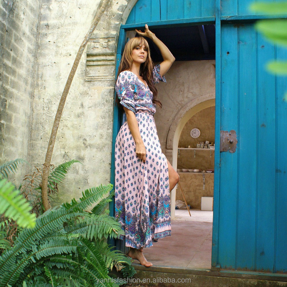 S-5XL Bohemian Floral Women Beach Summer Maxi Dress Plus Size Sexy V-neck Casual Dress Holiday Chiffon Party Long Dresses