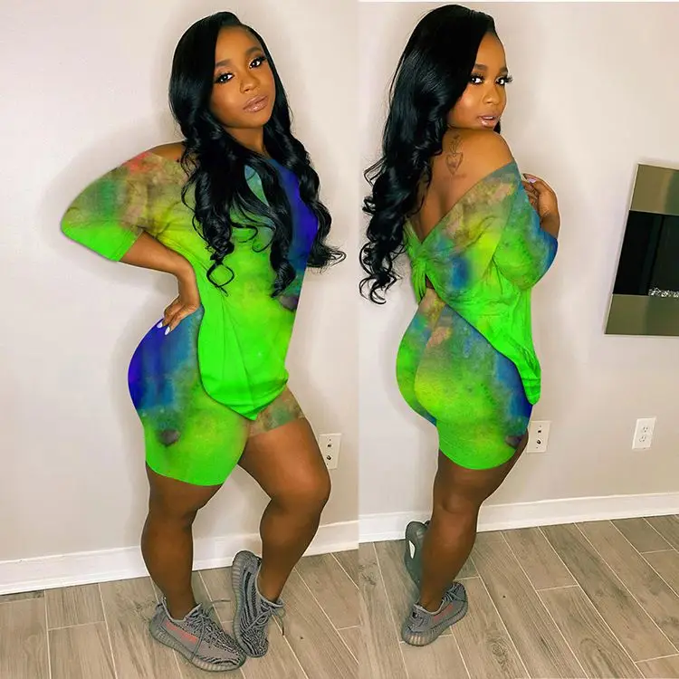 S-dressable Summer Sexy casual backless tie-dye 2 Pcs TrackSuit Outfits Two Piece Set Women Clothing For Women