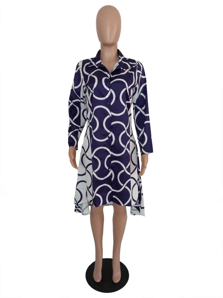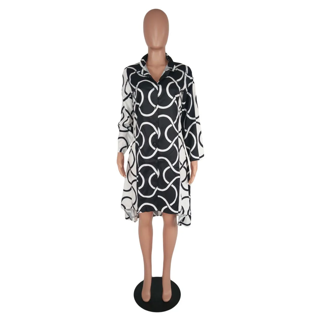 S to 3XL Fashion Casual Loose Black and White Striped Print Oversize Shirt Dress