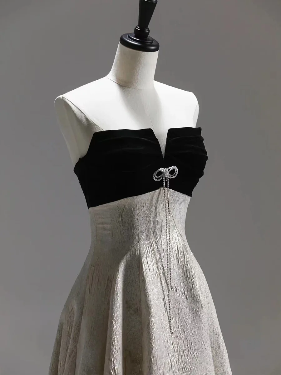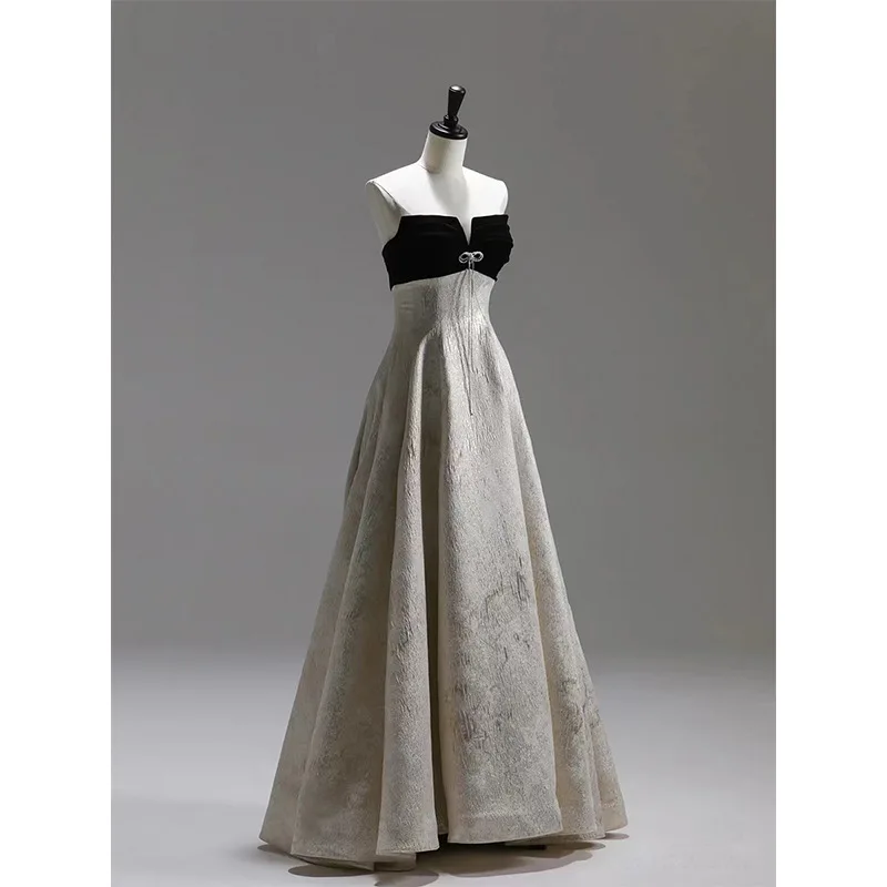 S0551H Retro texture tube top black temperament banquet performance evening dress