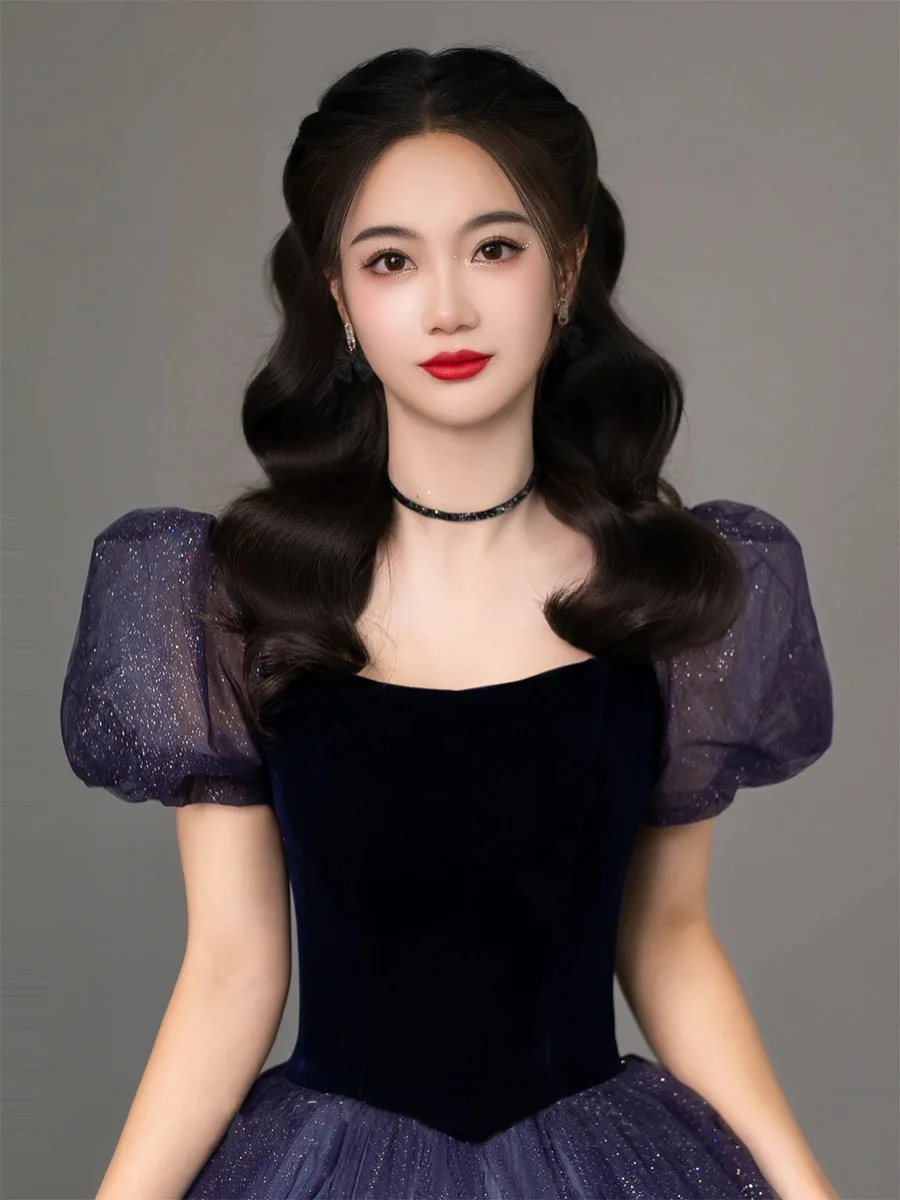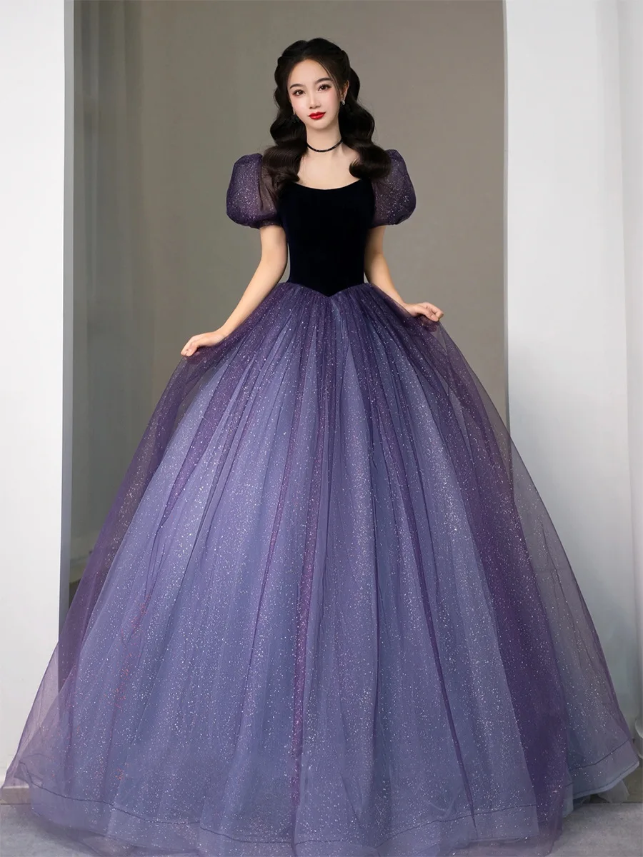 S0609H Sexy tutu skirt purple puff sleeve princess starlight dinner annual meeting performance evening dress