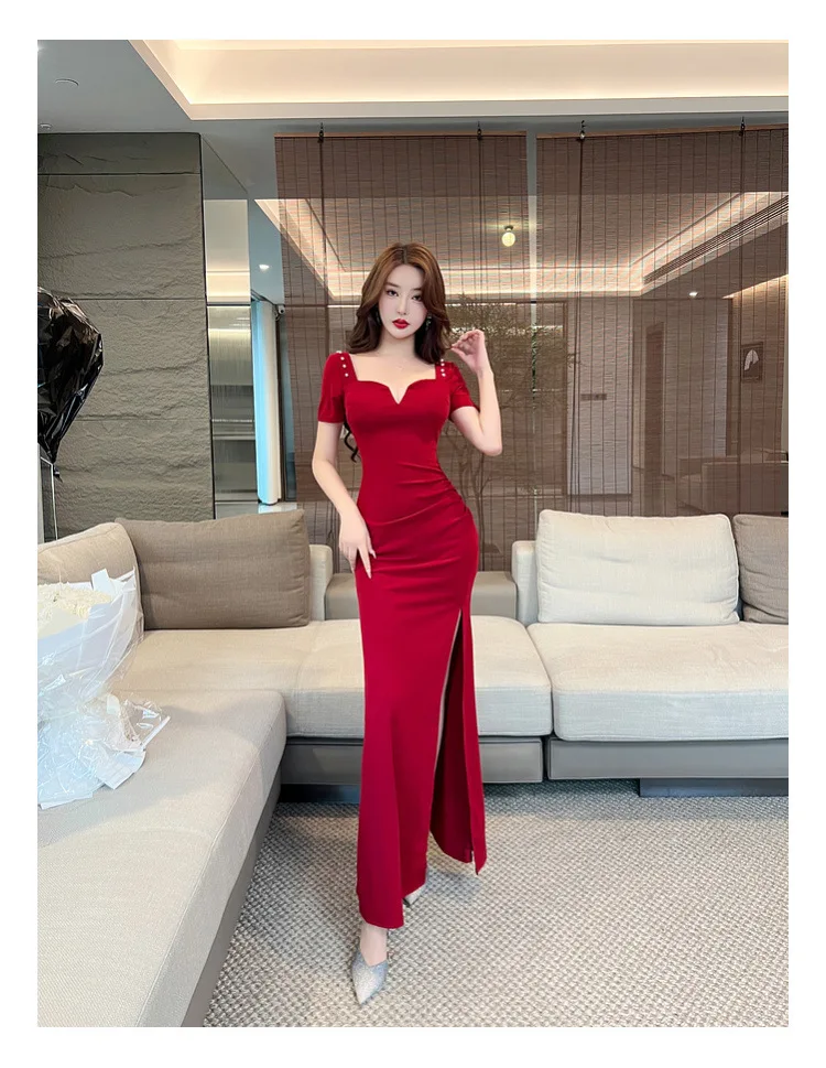 S0742T 2024 High Quality White Banquet Evening Dress Sexy Fishtail Classic Style Lace Pattern Half Sleeve Chapel Train Spring