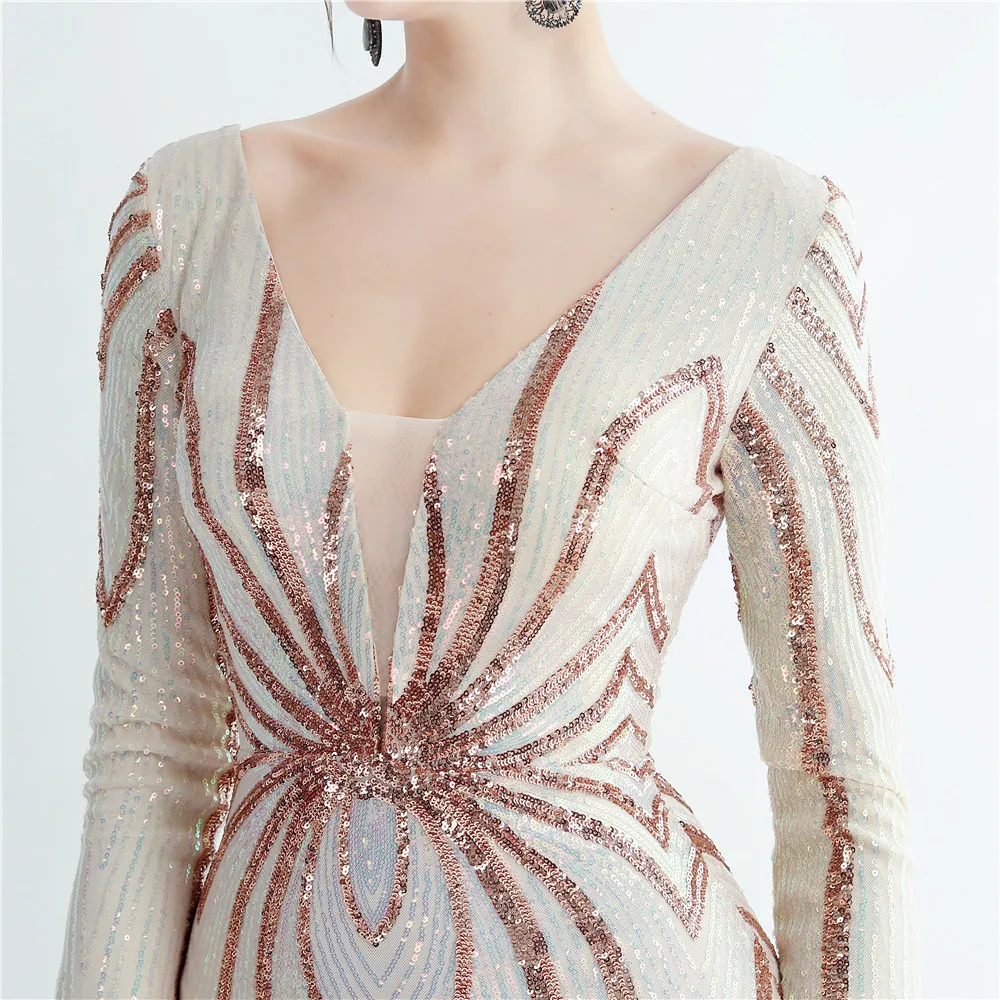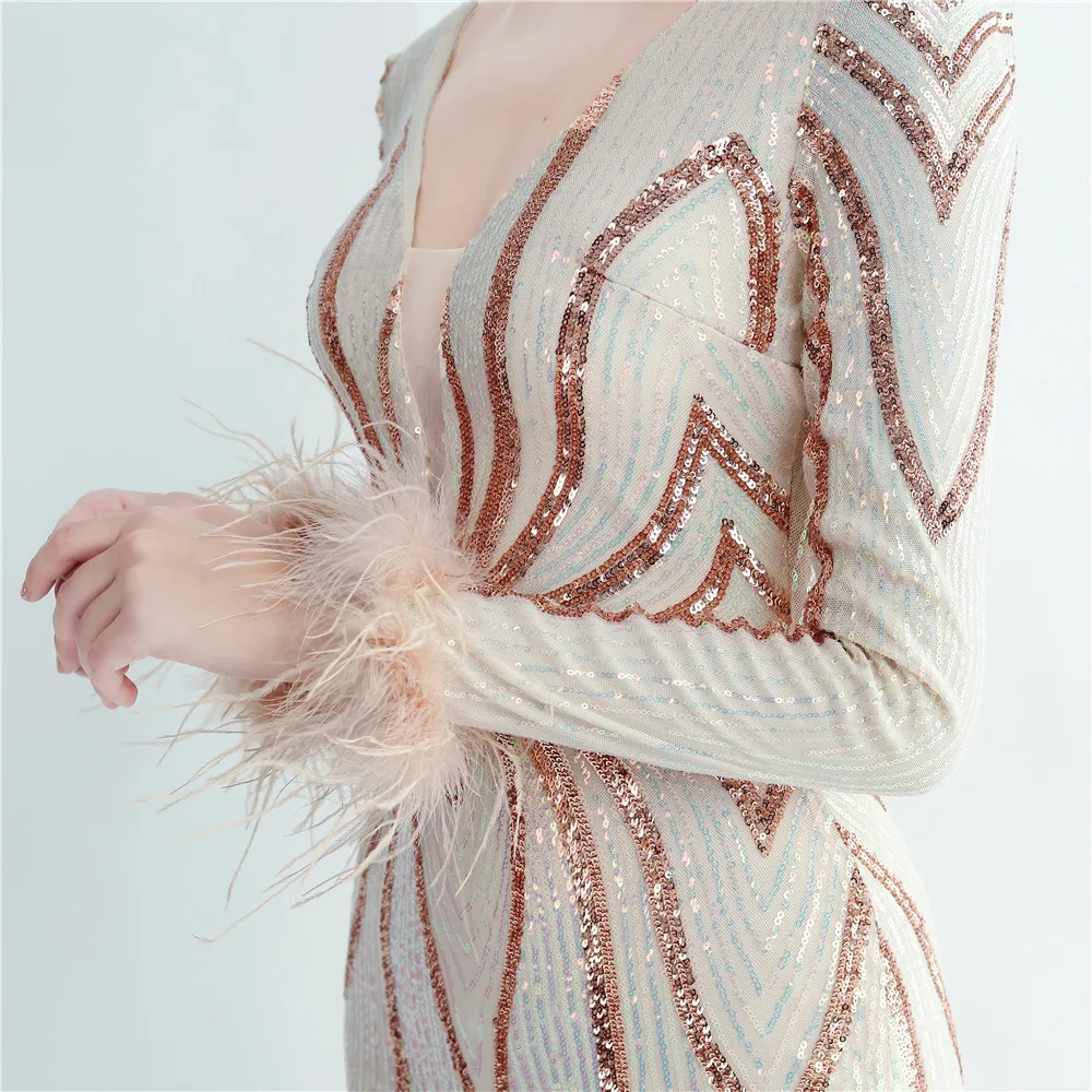 S0912H Hot sale sequined V-neck temperament fashion slit elegant evening dress