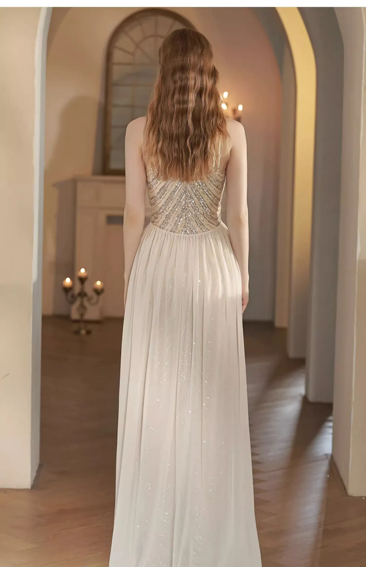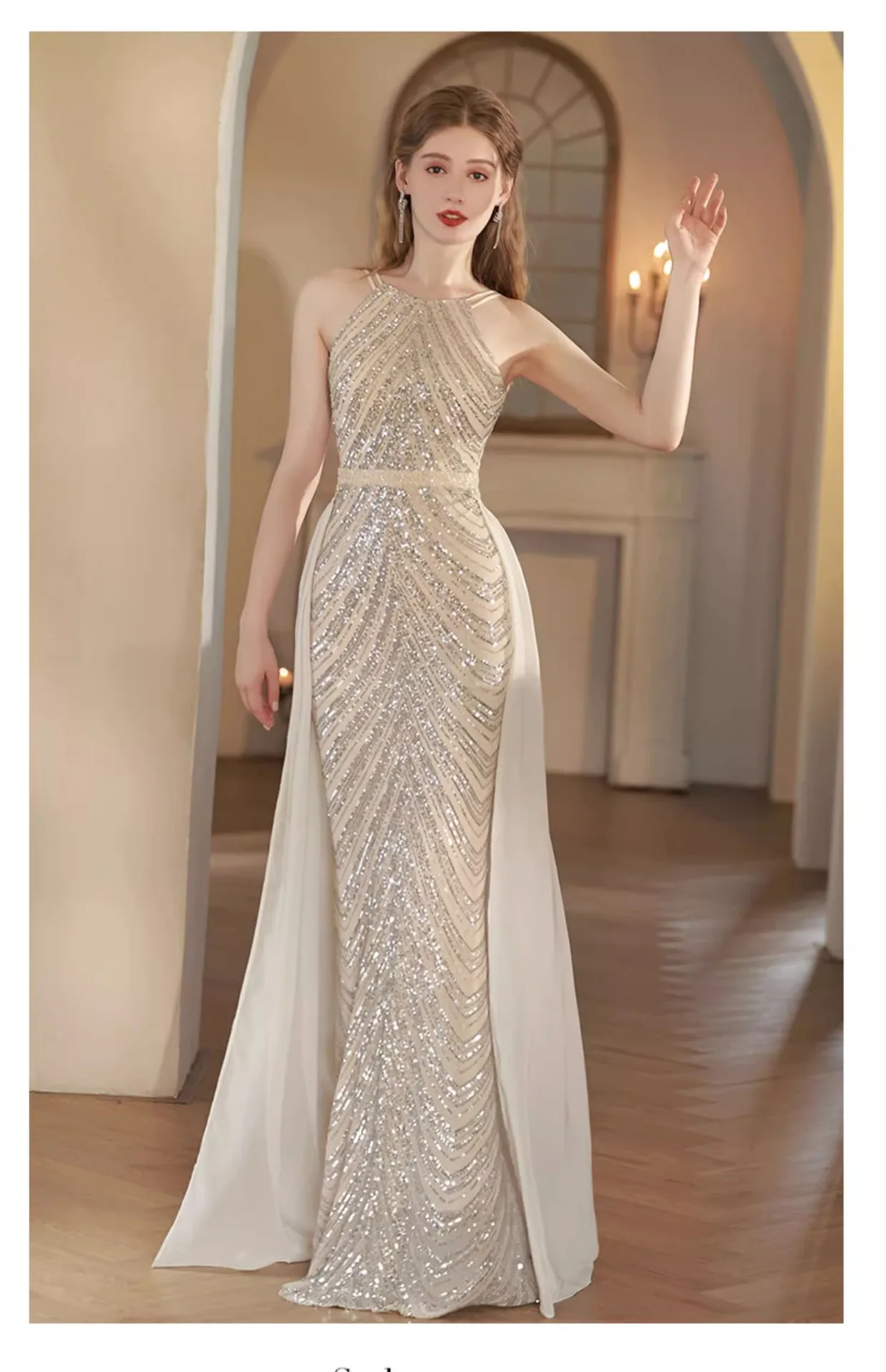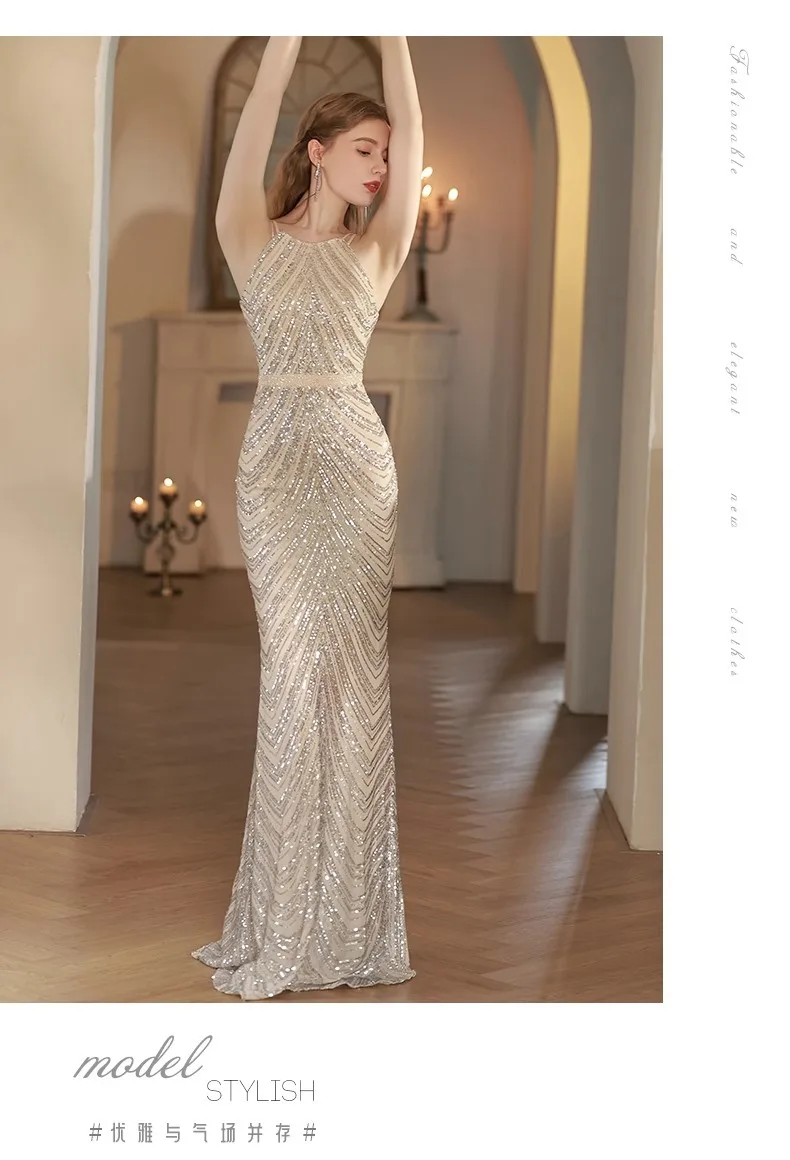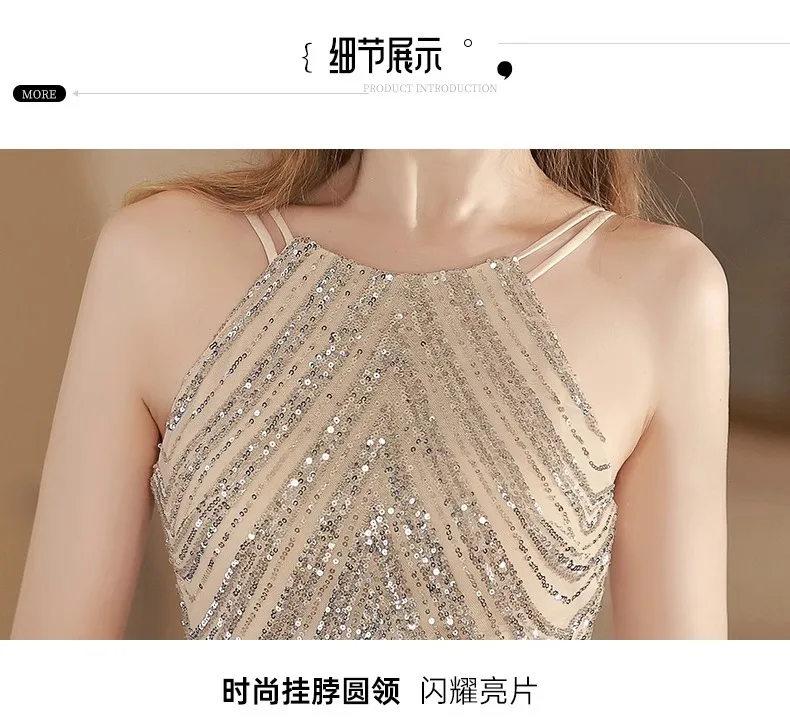 S1327T 2024 High Quality V-Neck Elegant Women's Evening Dress Royal Design with Lace Decoration Thin and Can Be Worn Long