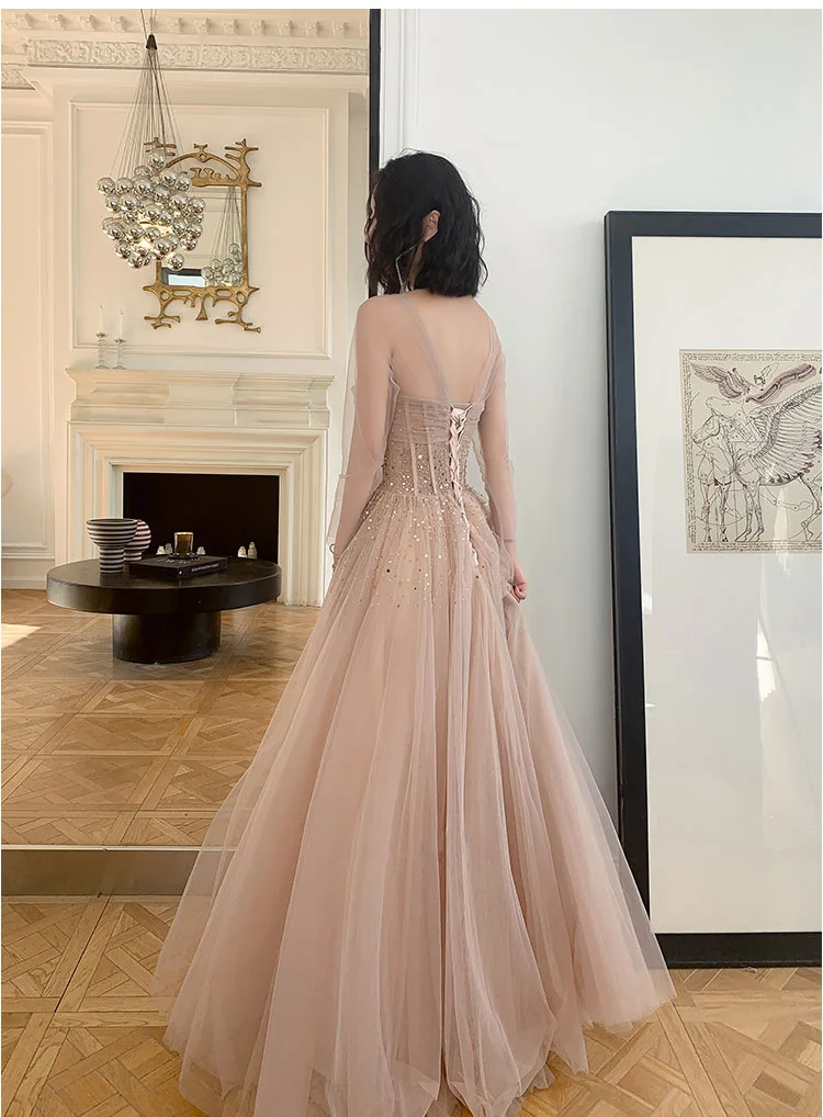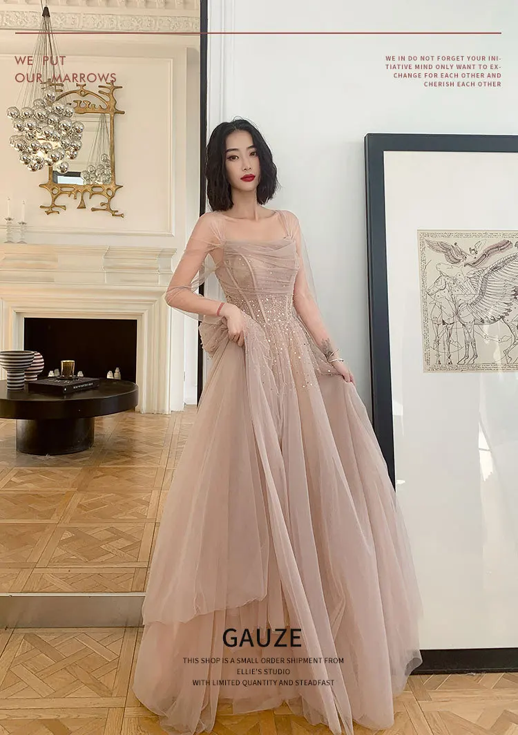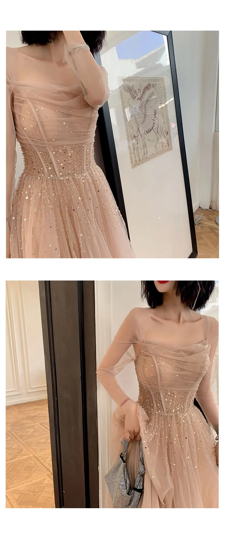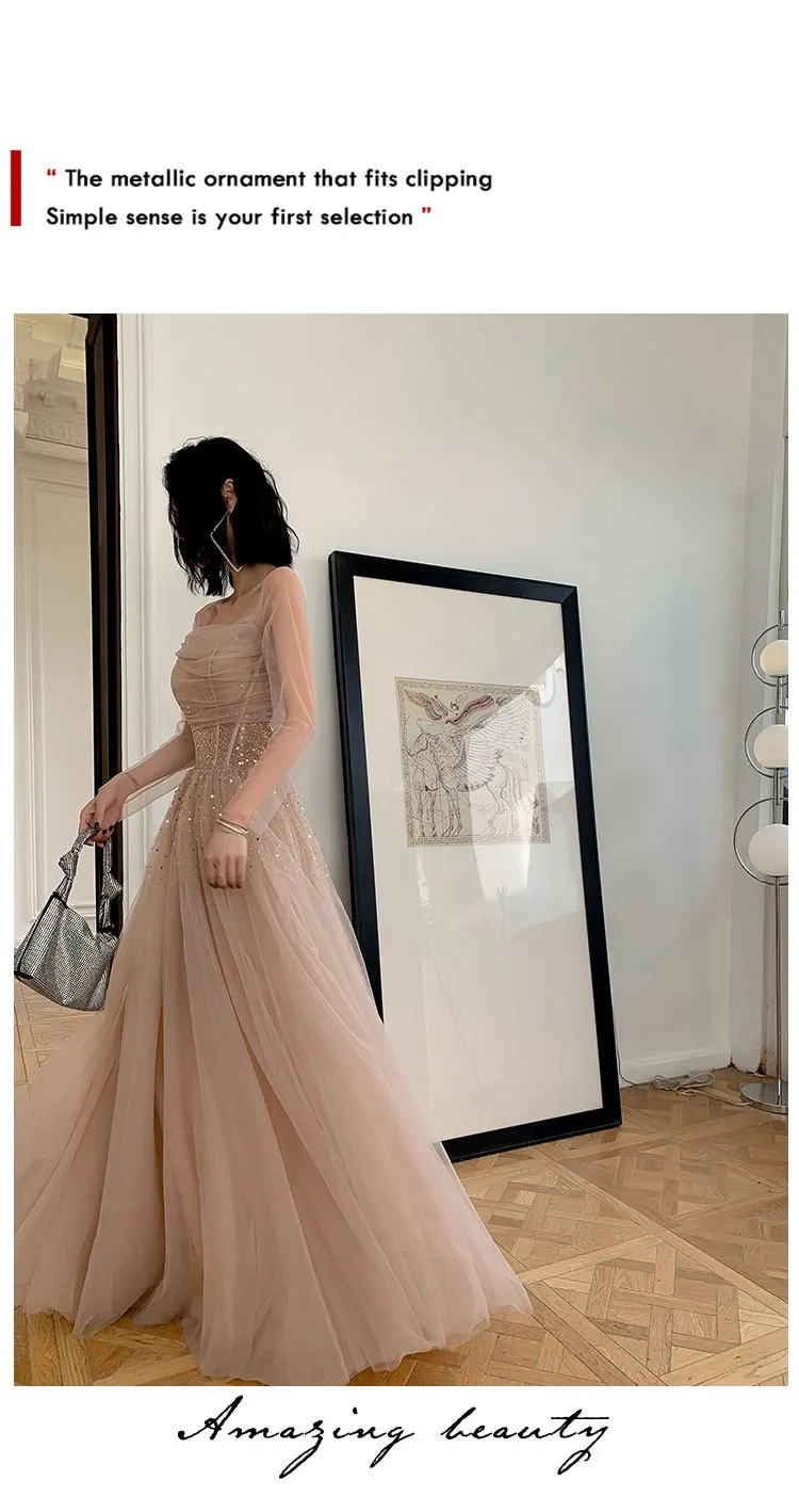 S1474T 2024 Hot Selling Classic Women's Long-Sleeved Light Luxury Panton Dress Elegant Lady's Evening Gown with Lace Decoration