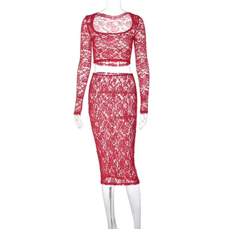 S3C15427W Lace Outfits Sexy Cami Top With Midi Skirts Set Women Fashion WomenTwo Piece Set 2024