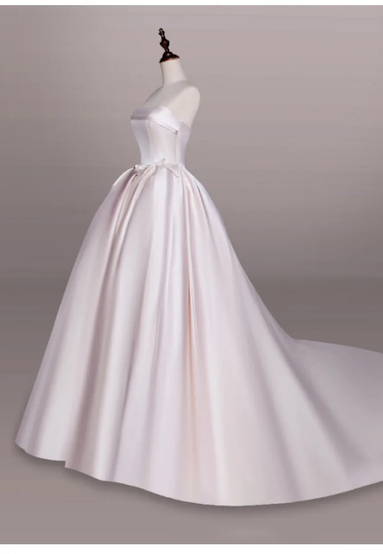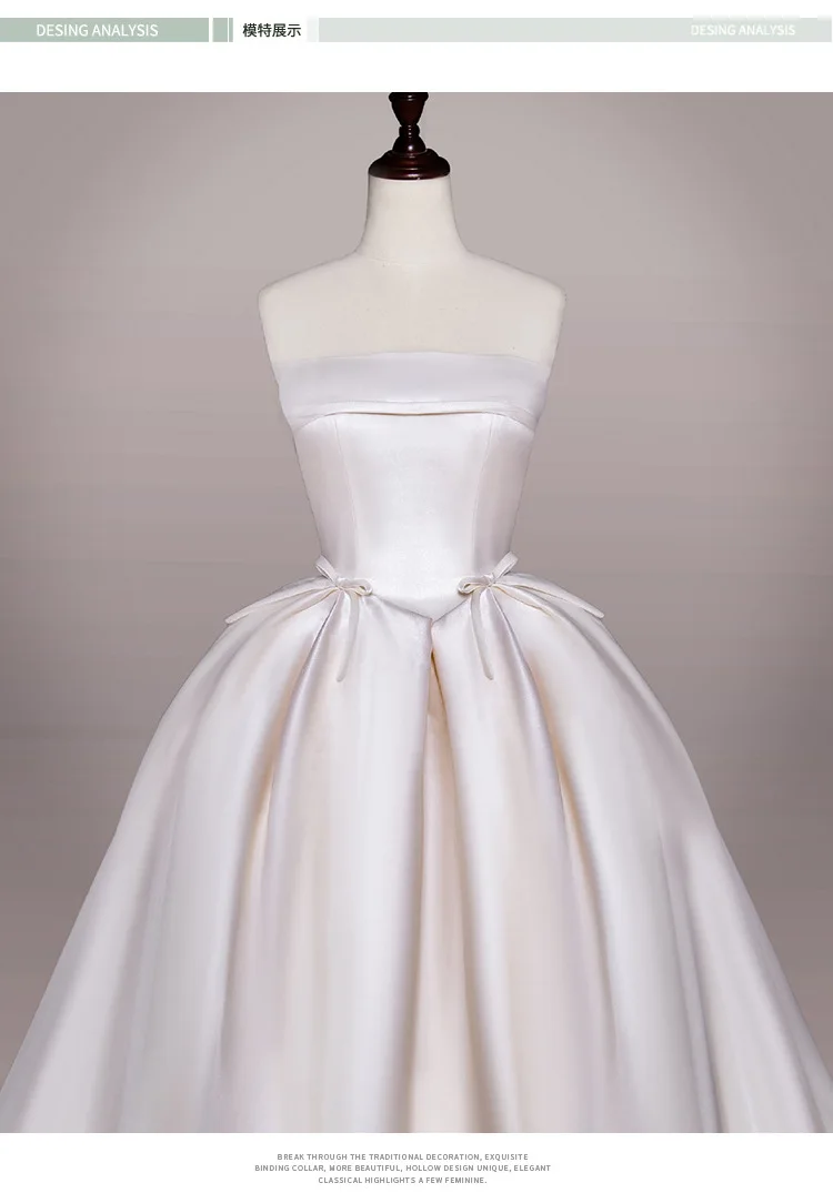 S4248F 2022 High Quality Custom Satin Strapless Tail party women ball gown wedding dress