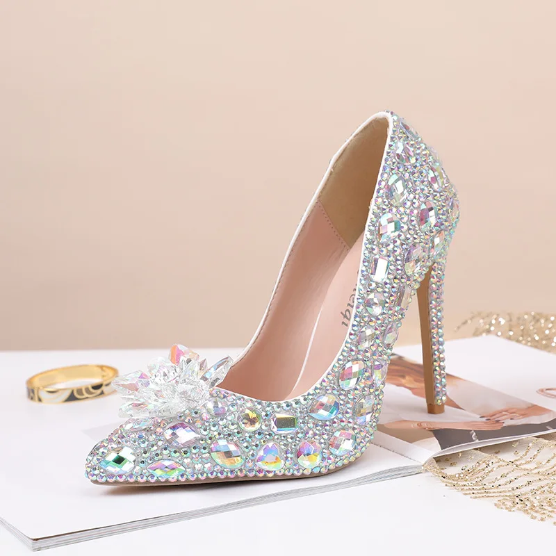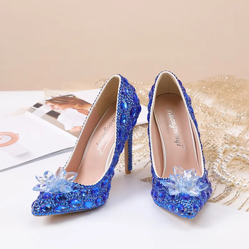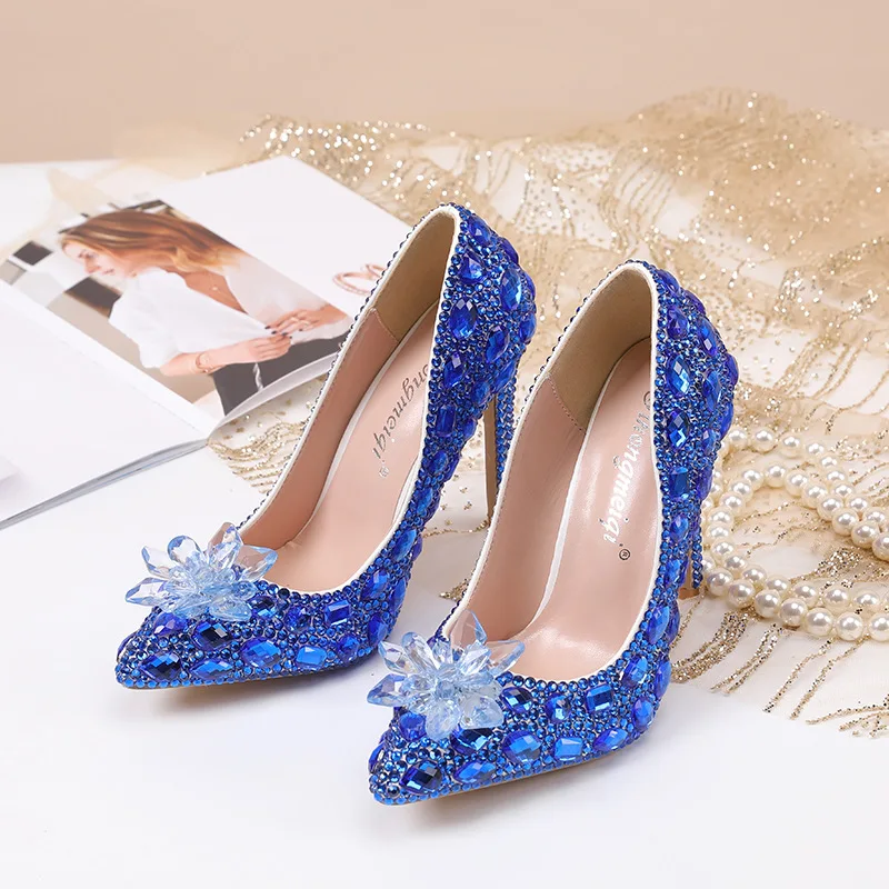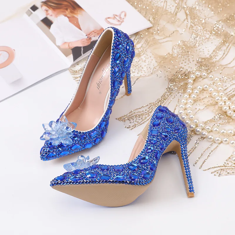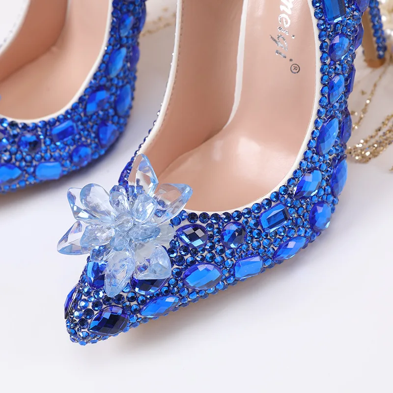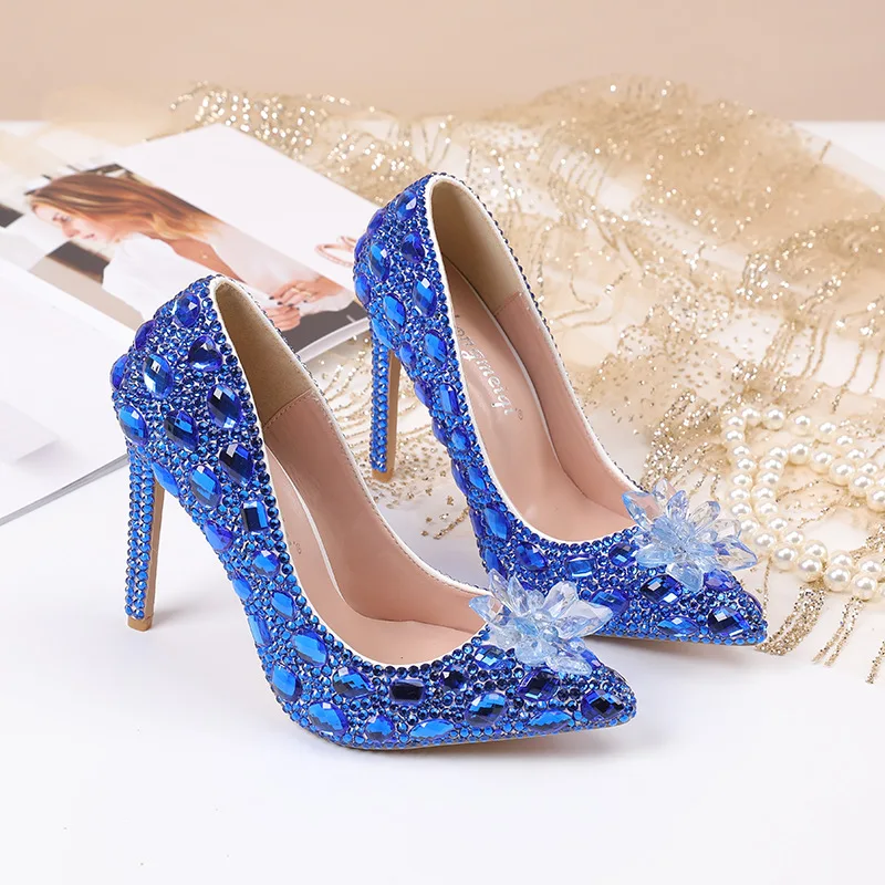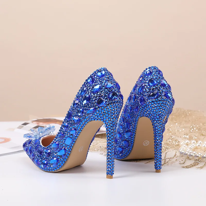 S4657F Crystal new 11cm multi-color high-heeled stiletto low-top pointed blue banquet wedding high-heeled shoes