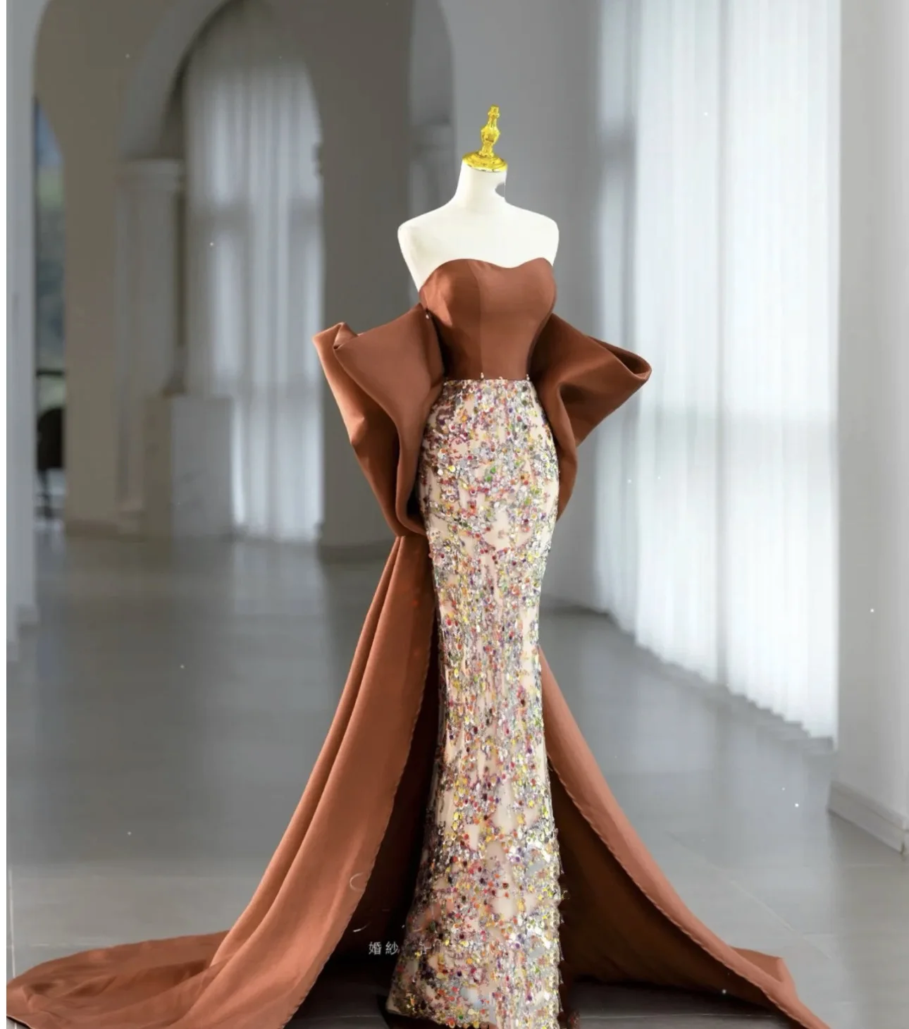 S7859F New hot -selling high -quality light luxury off shoulder heavy work satin super fairy wedding party dressing for ladies