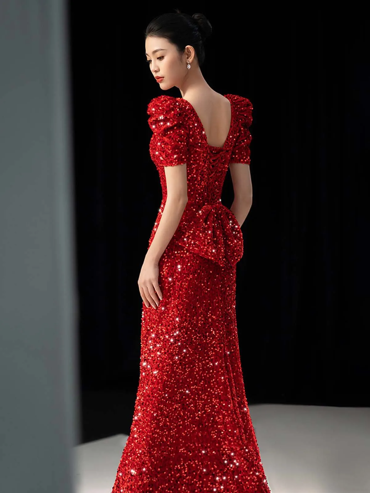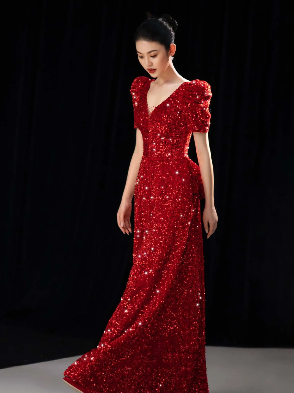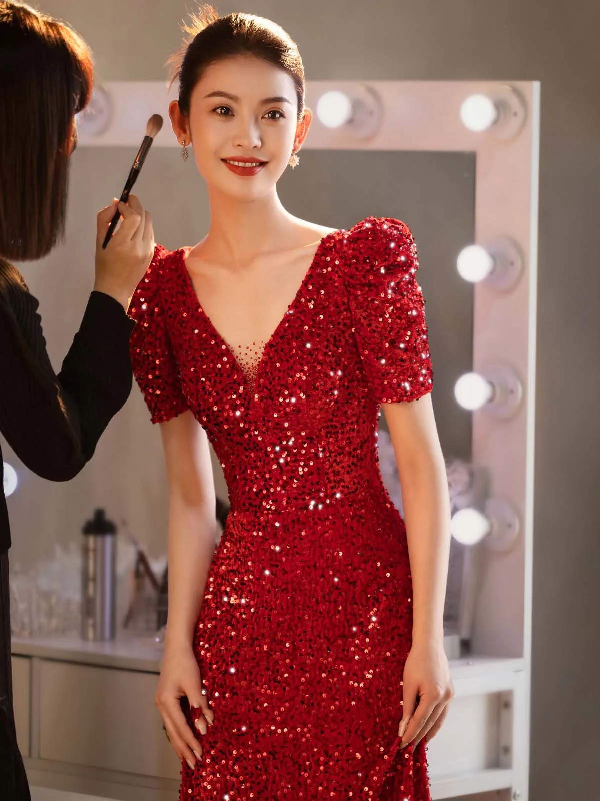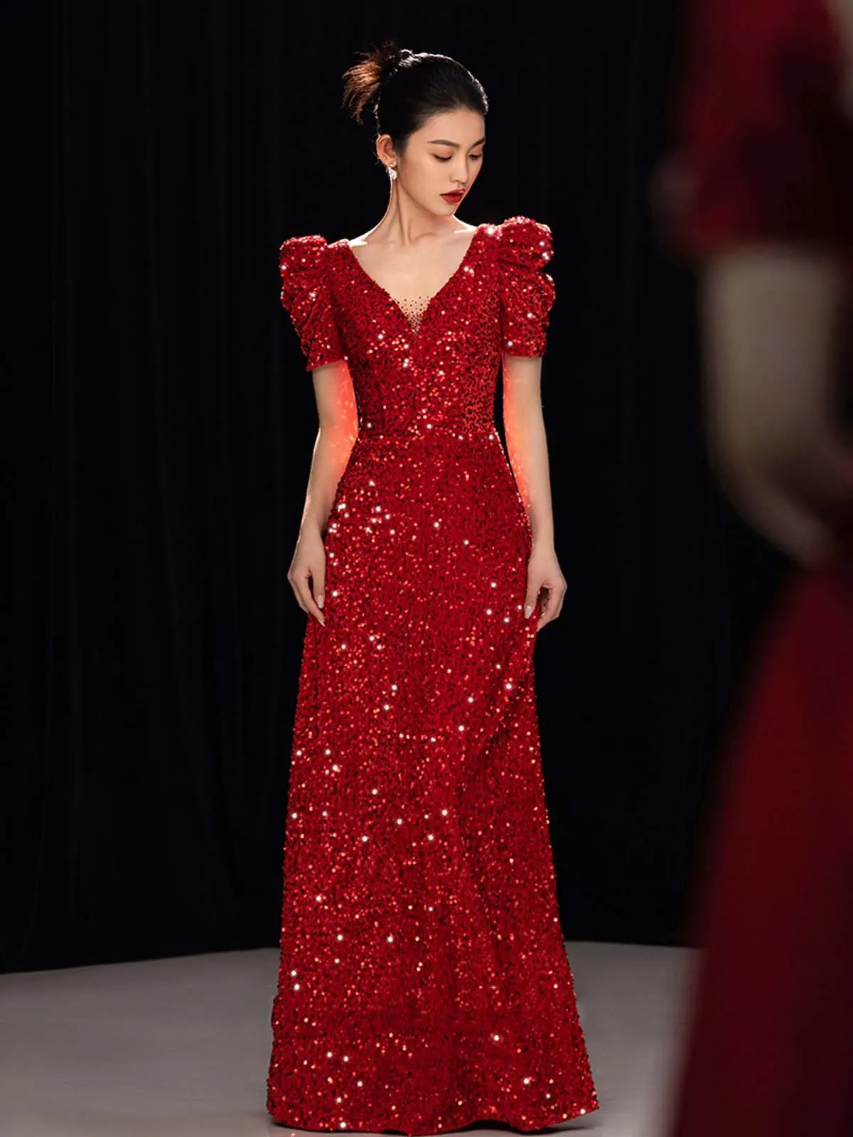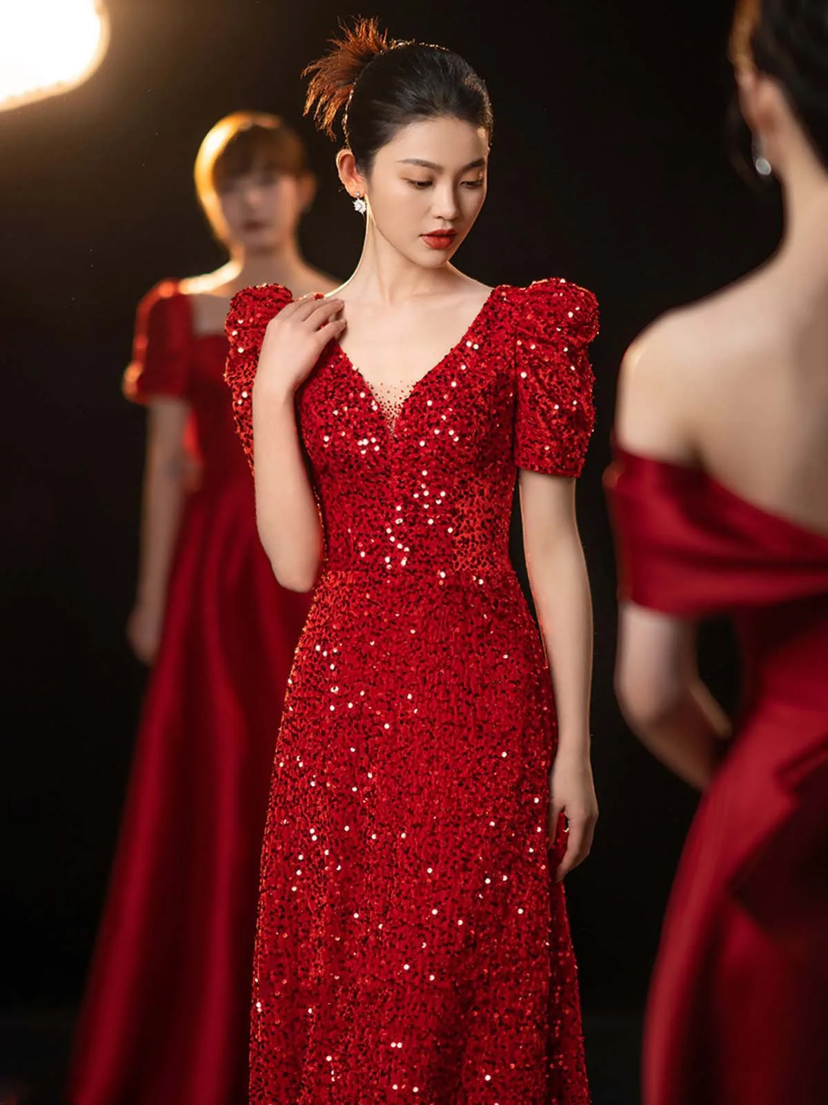 S8104F High -quality and high -level sense light luxury wine red banquet engagement elegant wedding evening dress