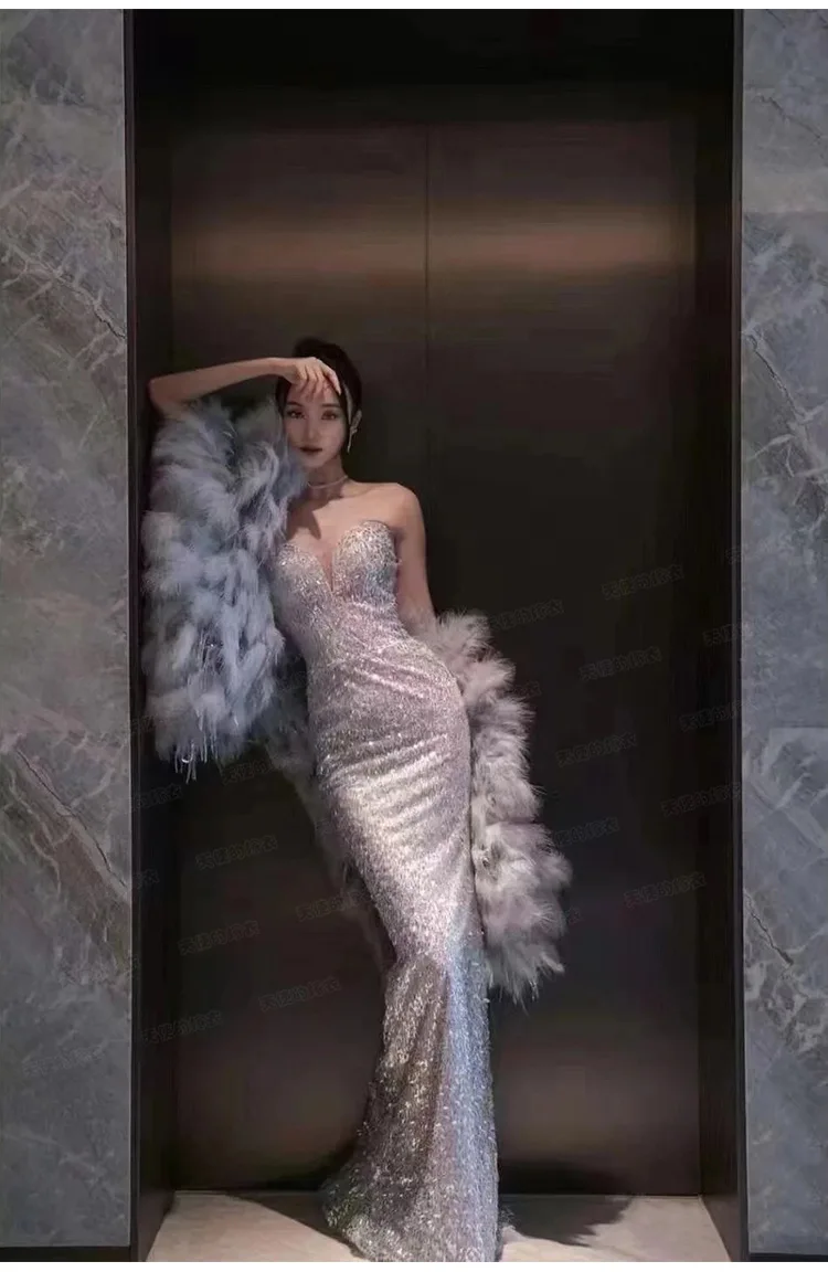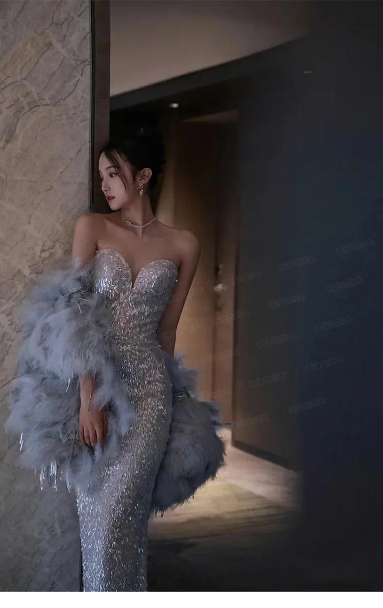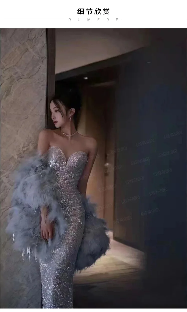 S8130F New hot -selling sexy gray tube top fishtail summer high -end long party dresses women evening elegance