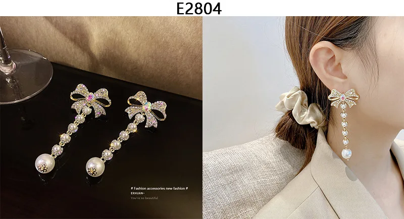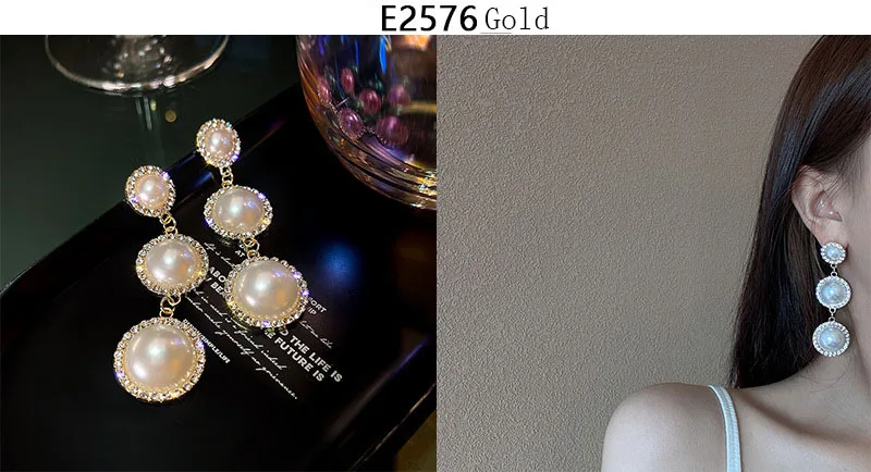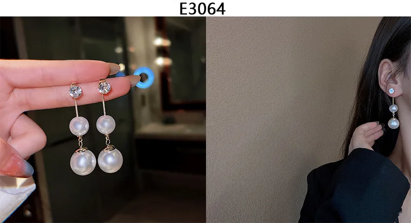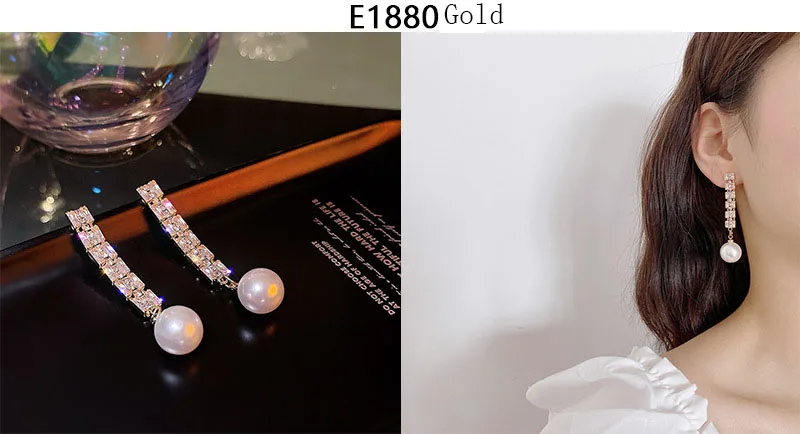 Women Fashion jewelry Gold Pearl Earring Designs Silver Zircon Color 925 Sterling Silver Long Tassel Earrings