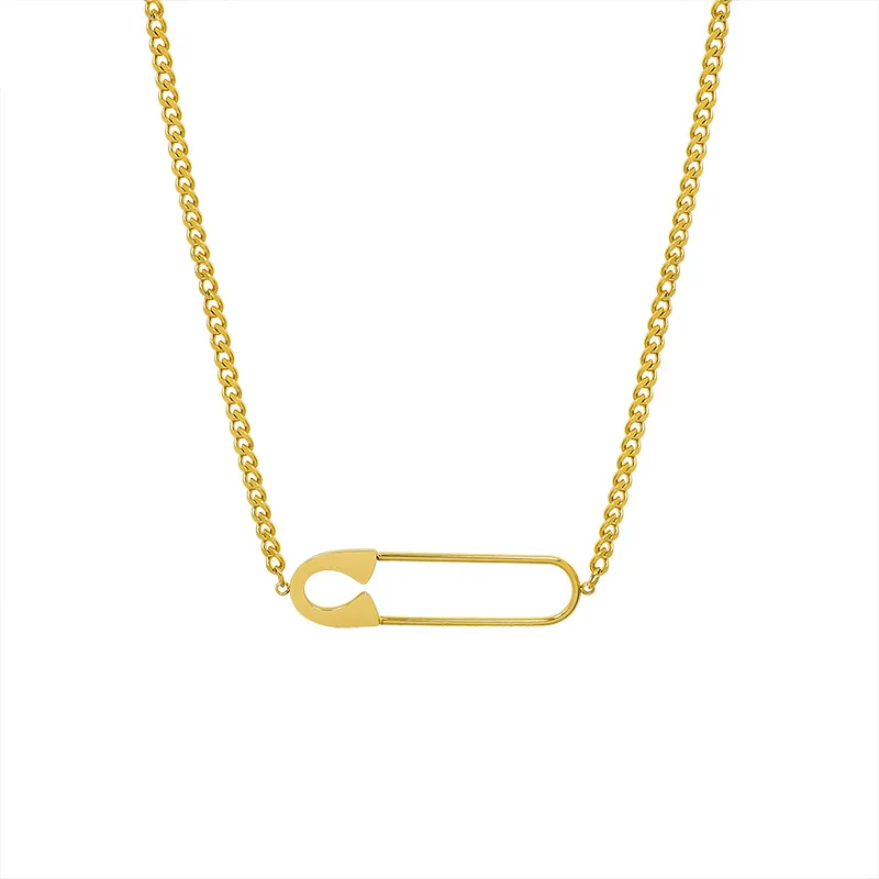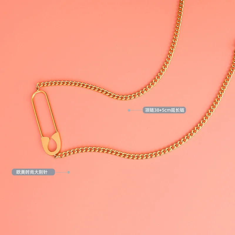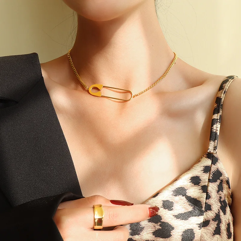 Safety Paper Pin Clip Pendant Necklace For Women Hollow Zircon Chains Choker Women's Necklace Fashion Jewelry