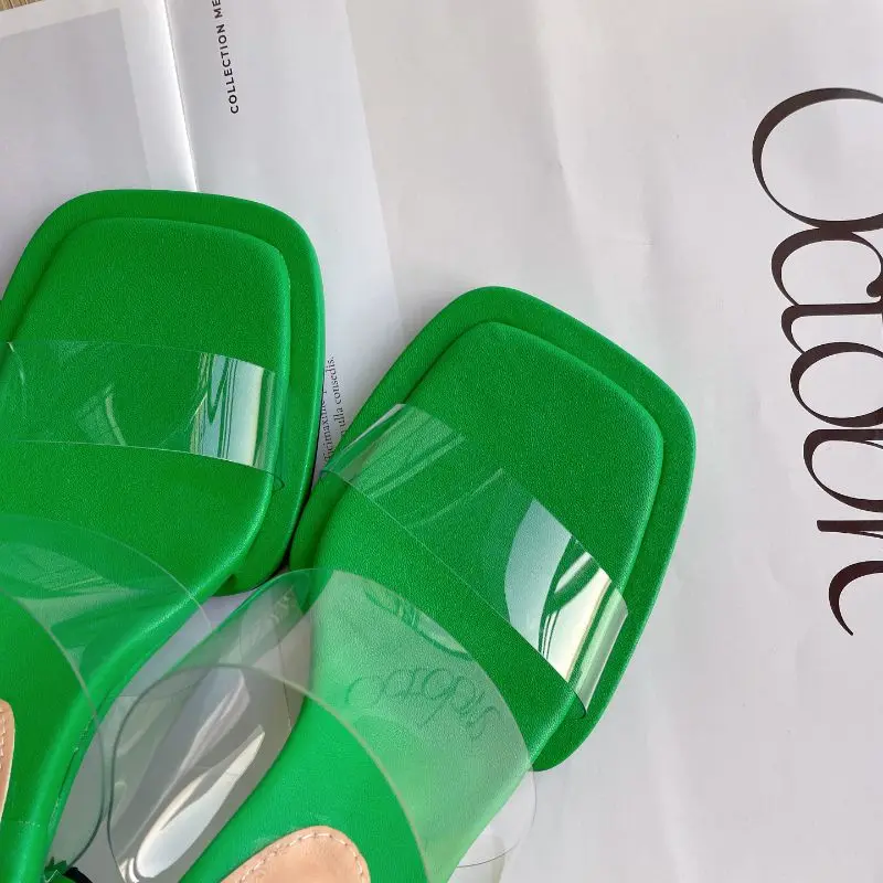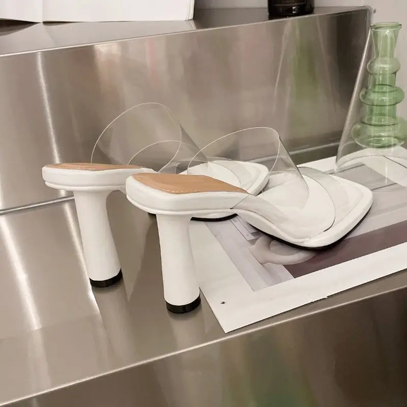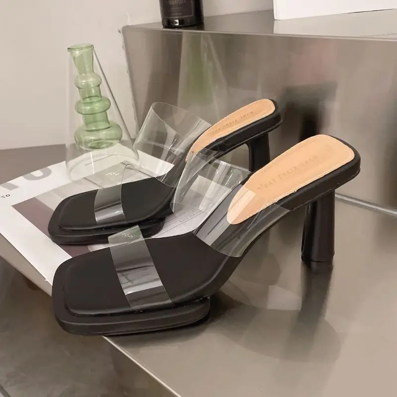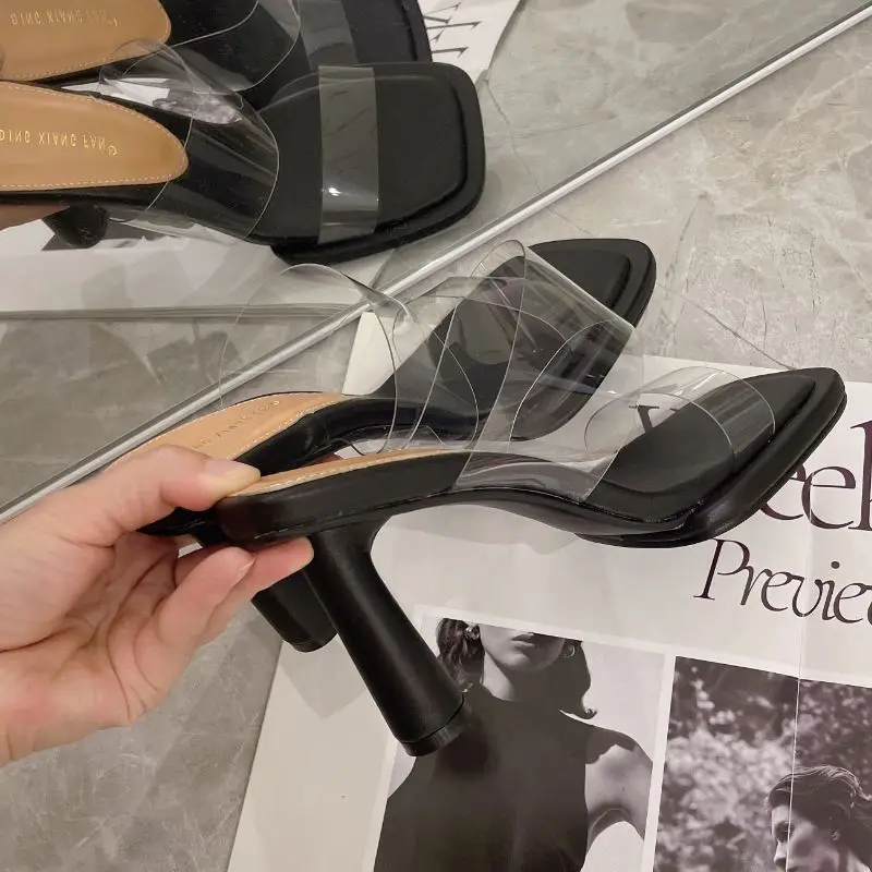 Sandalias Plasticas Quality PVC Glass Summer Women's Slipper Shoes Heeled Ladies Sandals